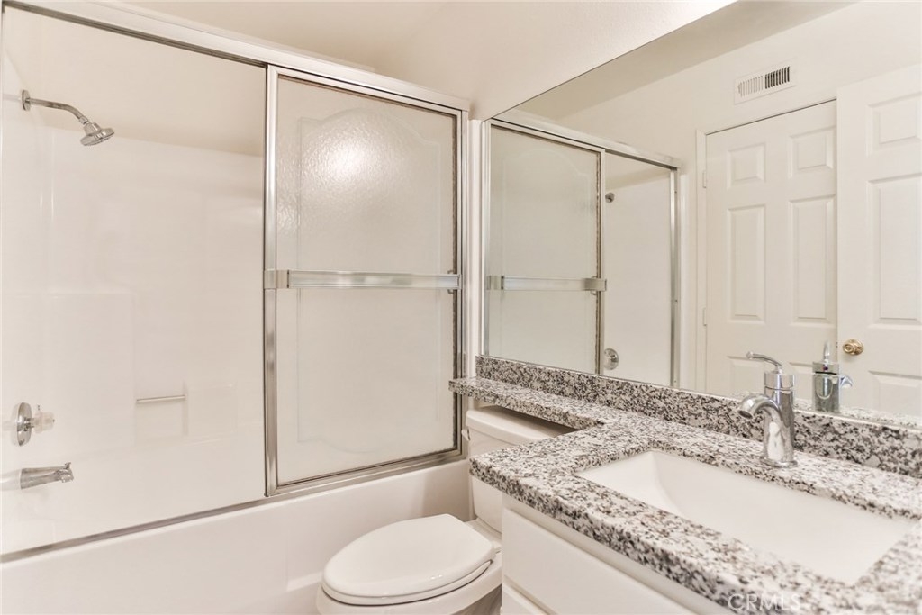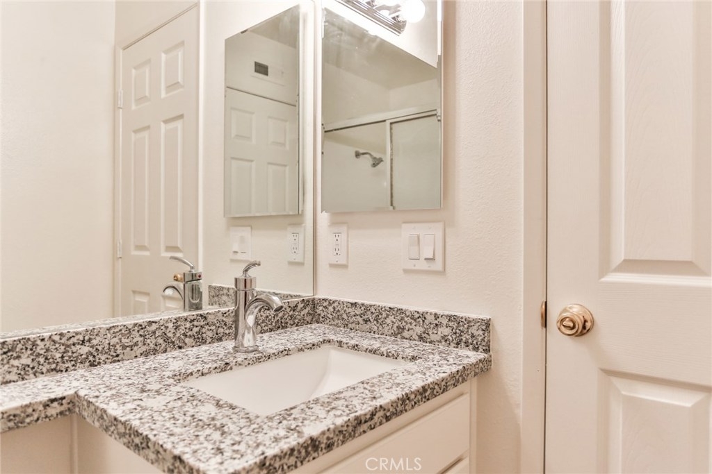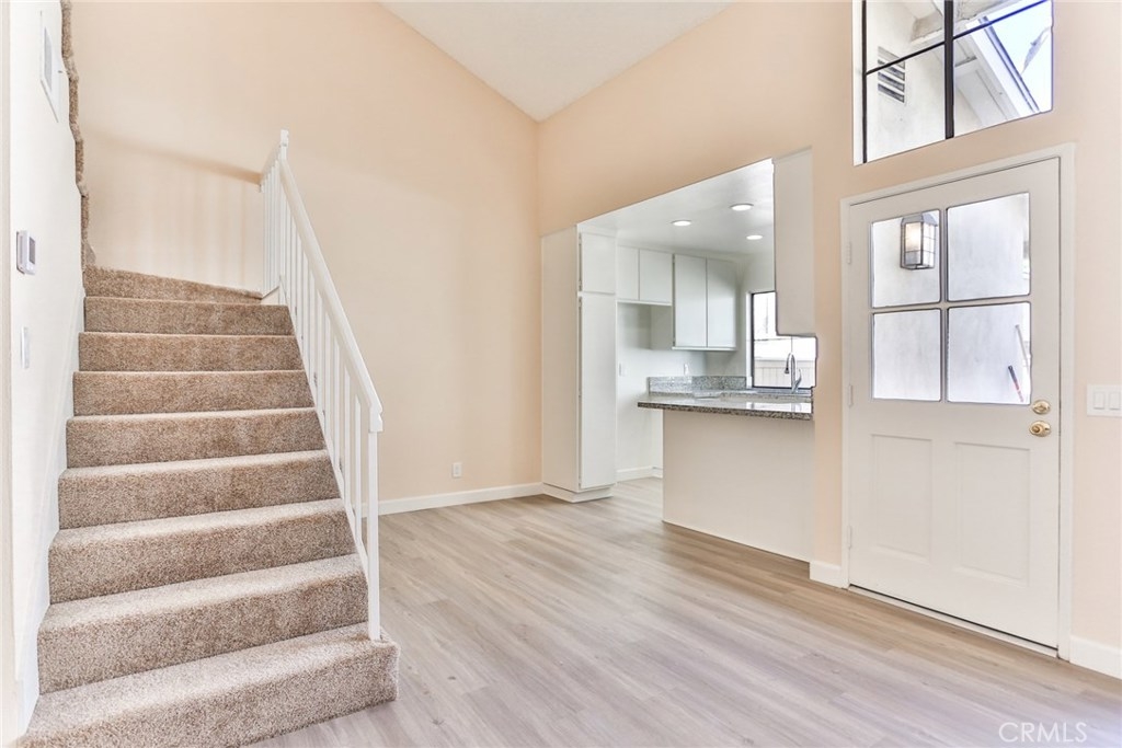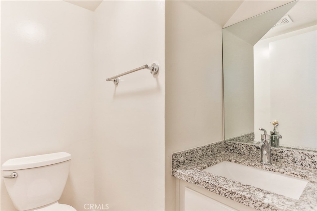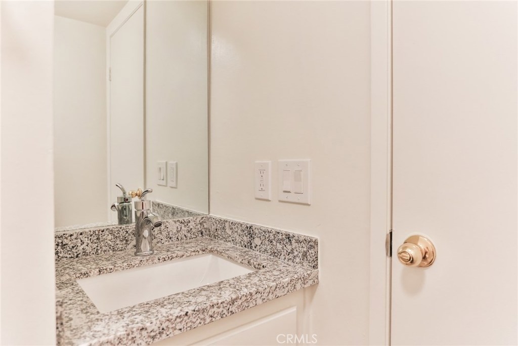 Newly renovated 2 story unit with attached garage in desirable Crosspointe Village community. New interior paint, laminate wood flooring and carpet throughout. Newly installed forced air heater and air conditioner. Living room with vaulted ceilings and brick fireplace. Dining area just off living room and adjacent to kitchen, which has new sink and faucet, newly painted cabinets and new granite counters. Half bath and storage cabinets off of living room hallway leading to the attached two car garage. Master bedroom has two closets with mirrored doors and long granite dual sink vanity. Shared access to second floor full bath, which also opens to hallway. Nice sized second bedroom with mirrored wardrobe closet. Conveniently located within complex near pool and main gate. Guest parking available near unit. Community also features pools and spas, green belts and mature landscaping. Conveniently located near the 22 freeway, just off of Garden Grove Boulevard and Beach, near area schools, shopping and dining, behind the newly revived shopping center with Chase Bank, Planet Fitness, In-N-Out, and Raising Canes, with more to come.