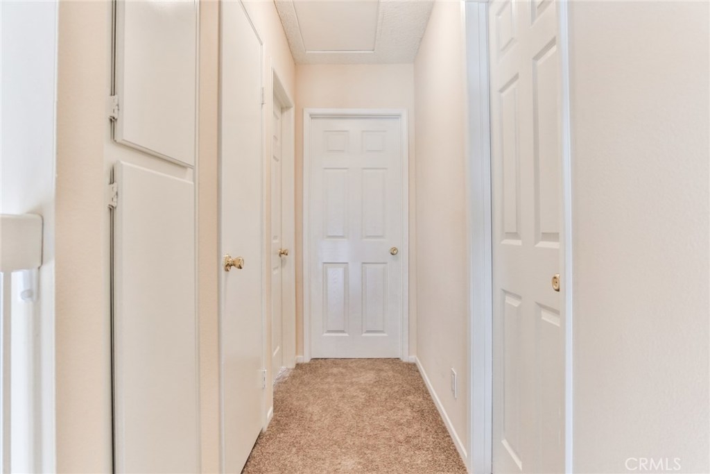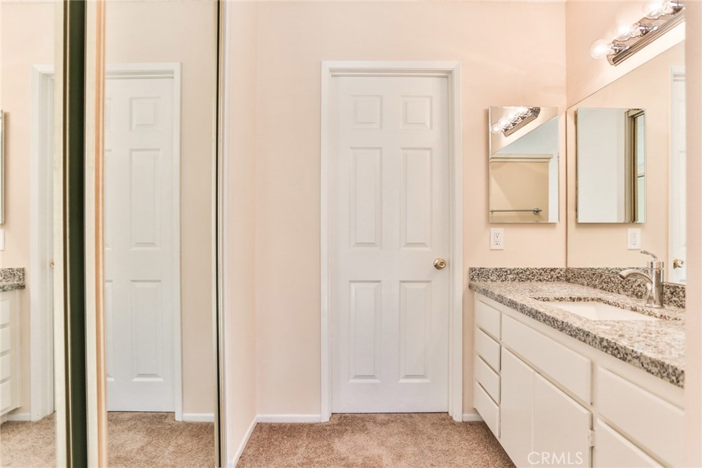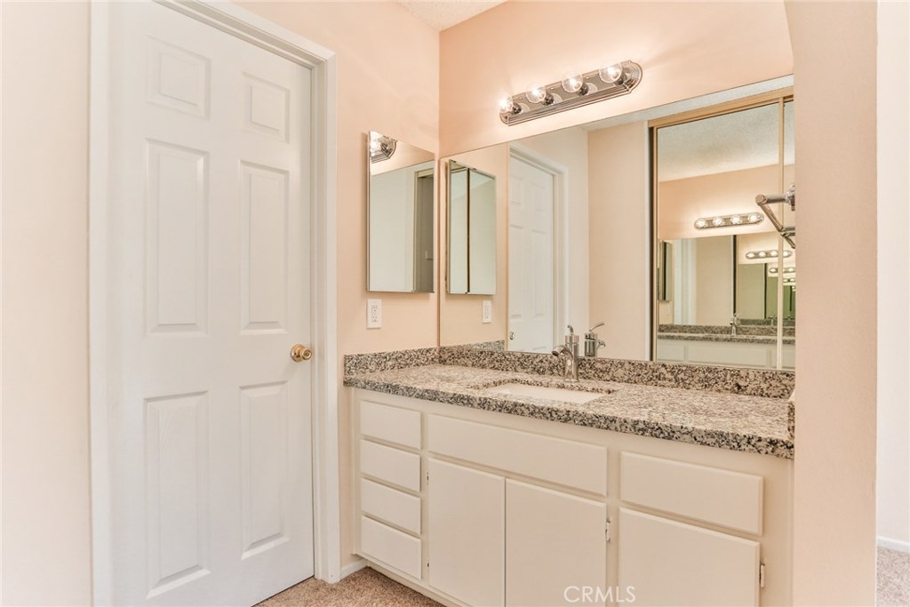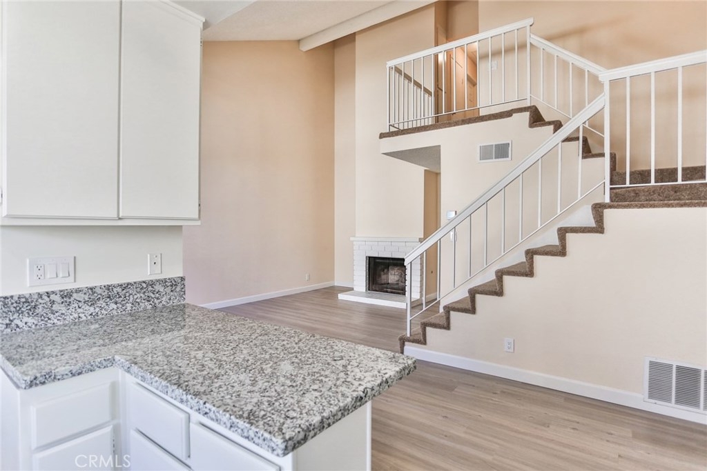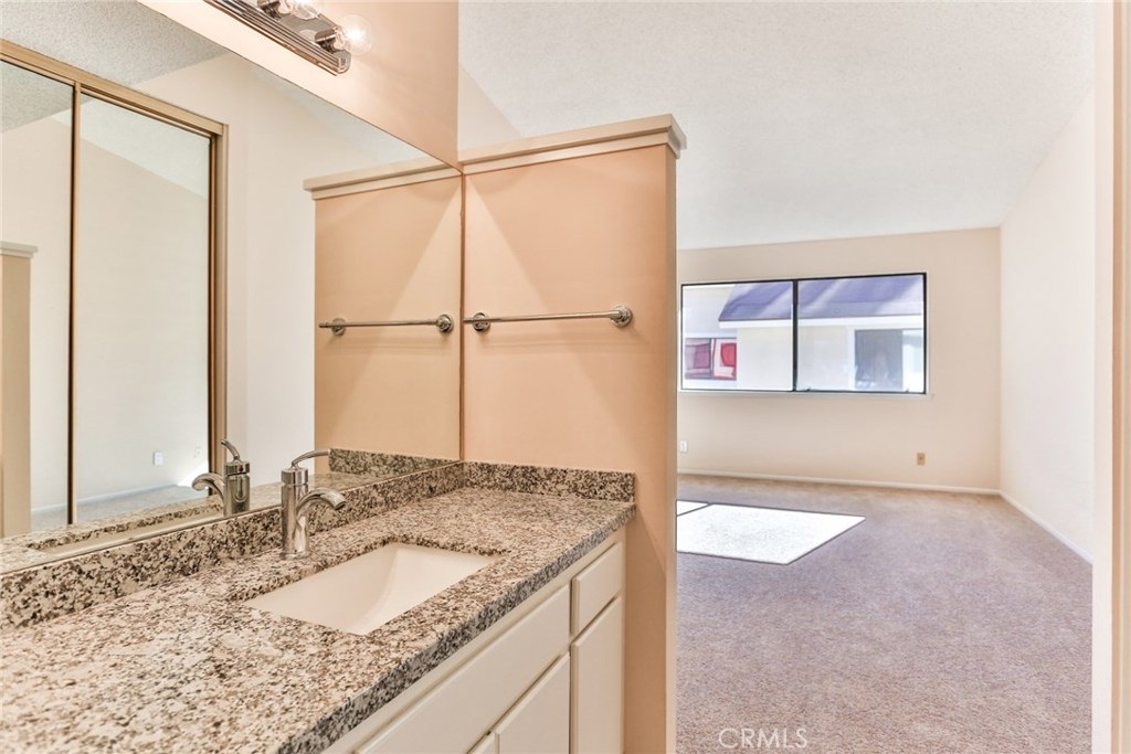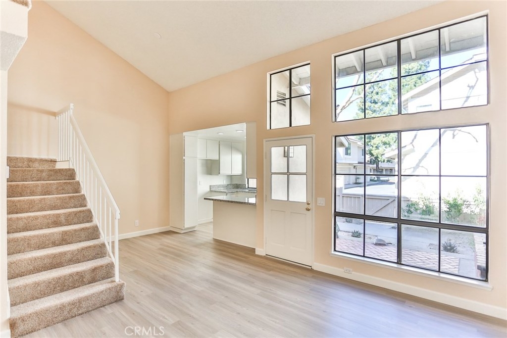 Newly renovated 2 story unit with attached garage in desirable Crosspointe Village community. New interior paint, laminate wood flooring and carpet throughout. Newly installed forced air heater and air conditioner. Living room with vaulted ceilings and brick fireplace. Dining area just off living room and adjacent to kitchen, which has new sink and faucet, newly painted cabinets and new granite counters. Half bath and storage cabinets off of living room hallway leading to the attached two car garage. Master bedroom has two closets with mirrored doors and long granite dual sink vanity. Shared access to second floor full bath, which also opens to hallway. Nice sized second bedroom with mirrored wardrobe closet. Conveniently located within complex near pool and main gate. Guest parking available near unit. Community also features pools and spas, green belts and mature landscaping. Conveniently located near the 22 freeway, just off of Garden Grove Boulevard and Beach, near area schools, shopping and dining, behind the newly revived shopping center with Chase Bank, Planet Fitness, In-N-Out, and Raising Canes, with more to come.