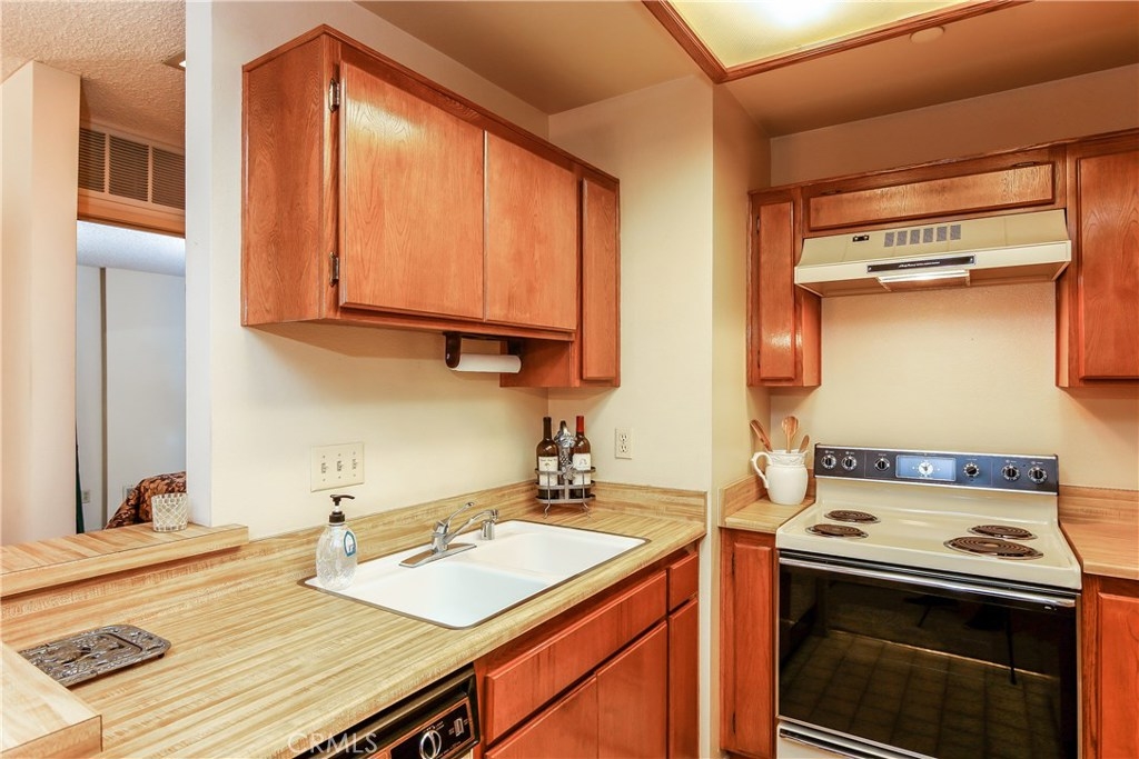 Popular Crosspointe Village condo. First time on market! This lower level one bedroom is located in the back of the complex away from busy streets. New toilet, water heater, garbage disposer and kitchen faucet being installed. Nice size front patio with pavers, bay window, kitchen with butcher block-look counters and pantry. Laundry closet with 220 dry hook-up. Spacious bath with long vanity counter and large oval soaking tub. The bedroom has two mirrored wardrobe closets and a window to the front patio. Central Air and heat. HOA is well funded and includes trash pick-up. Carport #710 is just steps away from the front door and there are lots of guest parking spaces throughout the complex. Complex features gated entrances, 3 pools, 3 spas, shower and bathrooms at all 3 pool areas. Near 22 Freeway and Beach Blvd.