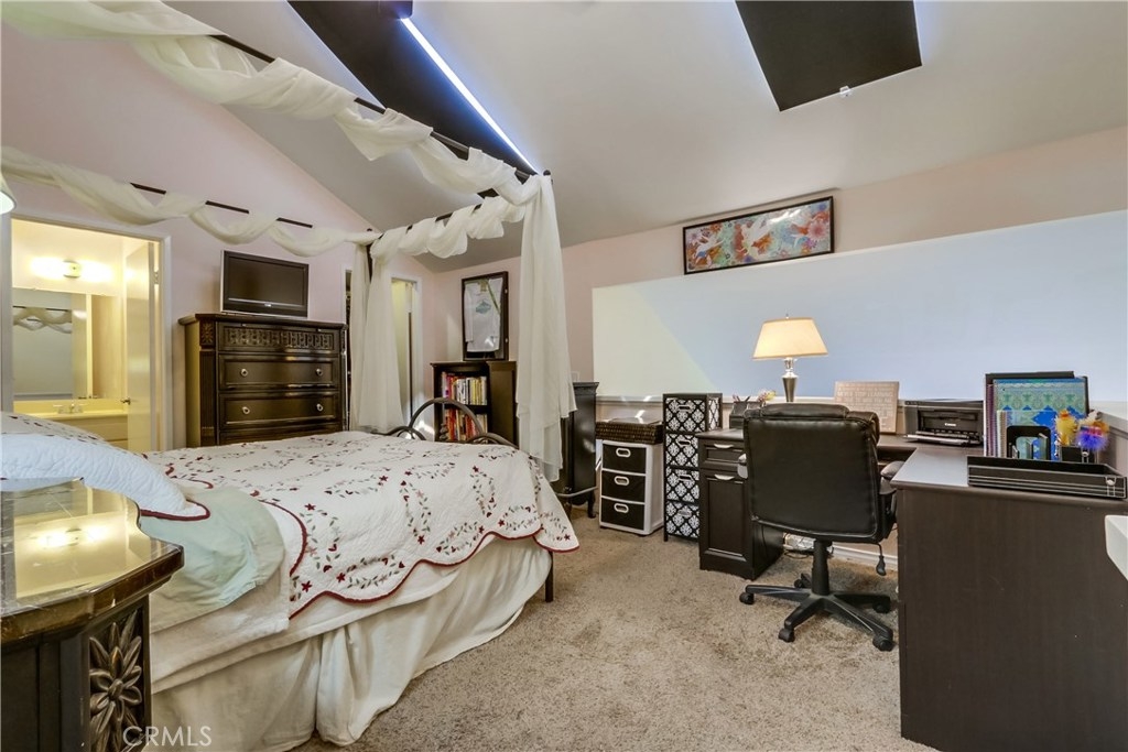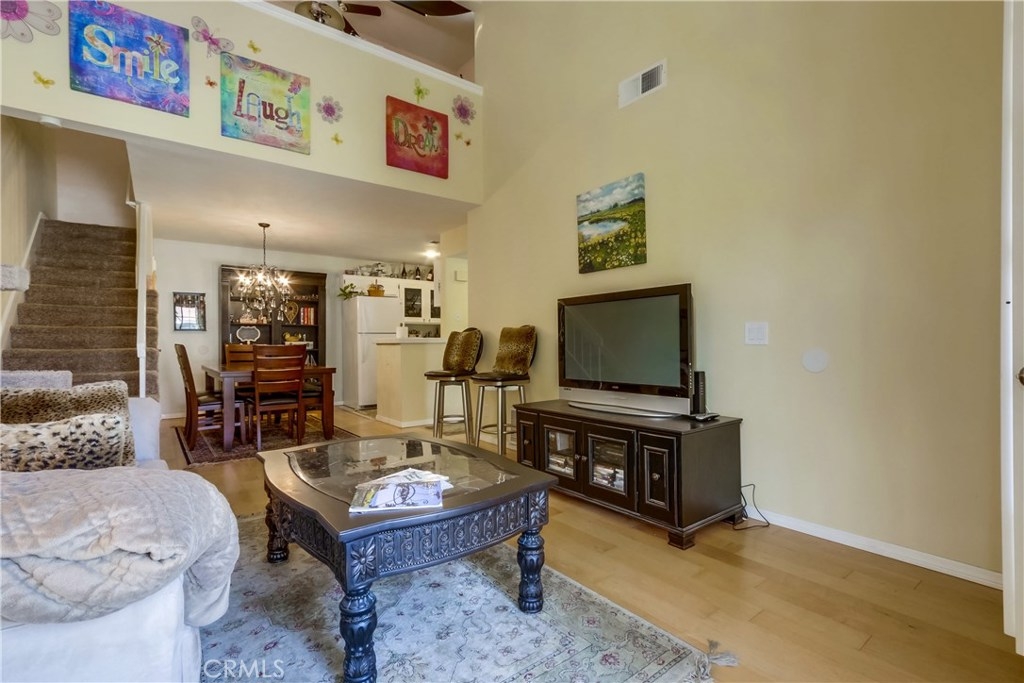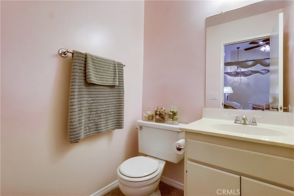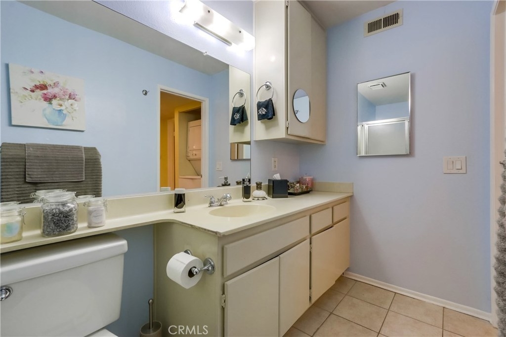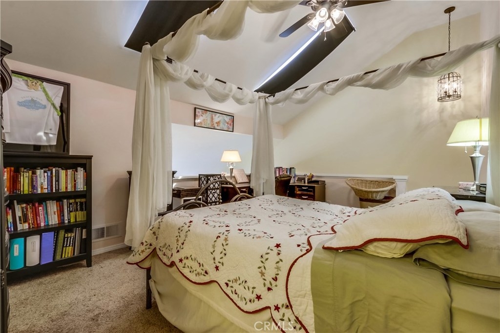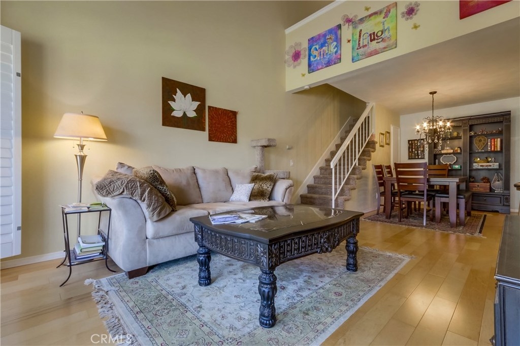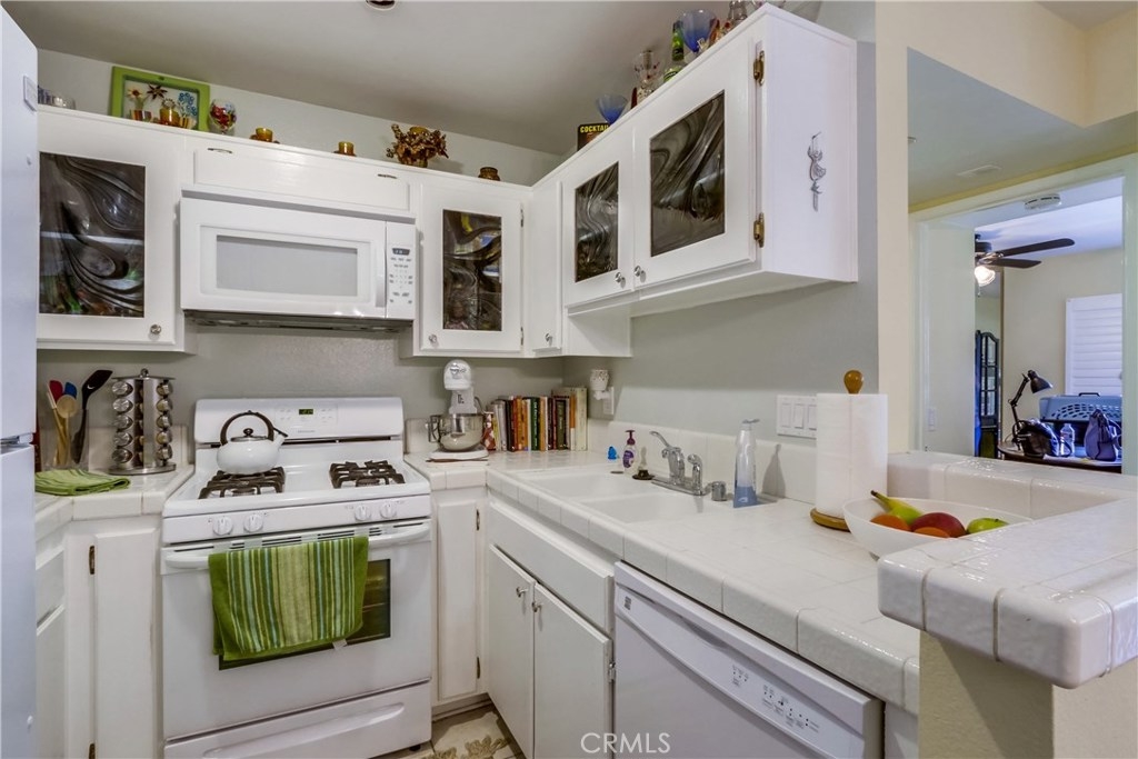 This adorable and spacious condo is located in the gate guarded community of Crosspont Village. Just off the 22 freeway at Beach Blvd and minutes from Bella Terra in Huntington Beach! There are 2 bedrooms; downstairs bedroom makes a great office, upstairs is the large loft with 1/2 bath, walk in closet and cathedral ceilings with skylights. This makes a perfect master suite and is nice and private. Lots of windows throughout with plantation shutters make it so bright inside. Kitchen has newer appliances, canned lighting, glass paneled doors on uppers and opens to dining room and living room. There is a full bath downstairs, a bedroom that would be a perfect office that overlooks the charming patio area and inside stacked washer and dryer. Beautiful newer hardwood floors and no popcorn ceilings! Ceiling fans in both bedrooms and 2 beautiful Pottery Barn chandaliers accent the dining room and stairway. All in a quiet, well maintained community. Pool area a close walk away. Plus convenient to walk to shops with a new coffee shop (S) going in just across the street! There is 1 assigned carport space and a second permit for the uncovered parking spaces, both just steps away. If you've not seen this lovely community, you must! It's a real jewel.