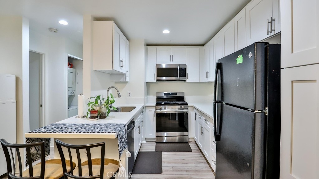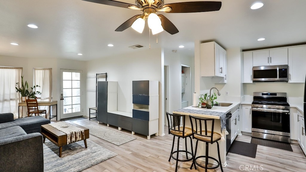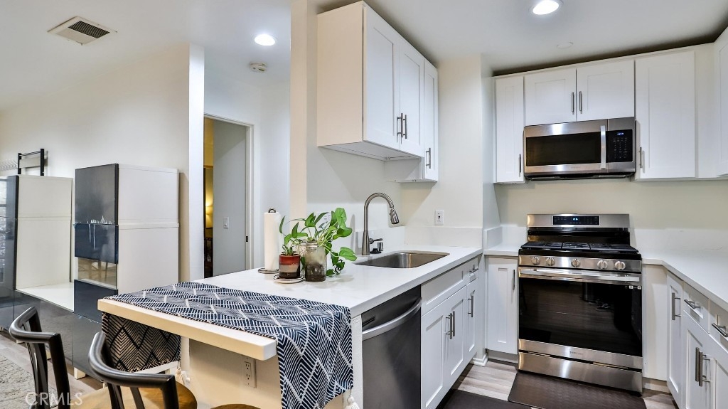 Welcome home to your beautifully upgraded condo in the quiet, gated community of Crosspointe Village. This lower-level unit comes with a large patio for your own private outdoor space, and is situated close to the greenbelt. The kitchen features new cabinets with plenty of storage space, new quartz countertops, and stainless steel stove and microwave. New paint and flooring throughout the main living space and bedroom. This unit features upgrades such as recessed lighting in the living room, and an in-unit washer/dryer. BRAND NEW Central HVAC will keep you cool in the summer heat and warm in the winter! Condo comes with an assigned carport and storage lockers, with ample parking for your additional vehicles or guests. The community boasts a range of amenities, including 3 pools & spas, well-maintained greenery & flower beds throughout the neighborhood, as well as 24-hour gated security. Ideal location just steps away from Rodeo 39 Public Market, easy access to the 22 Freeway, and a short drive from the beach, CSULB, Knott’s Berry Farm, and Disneyland!
