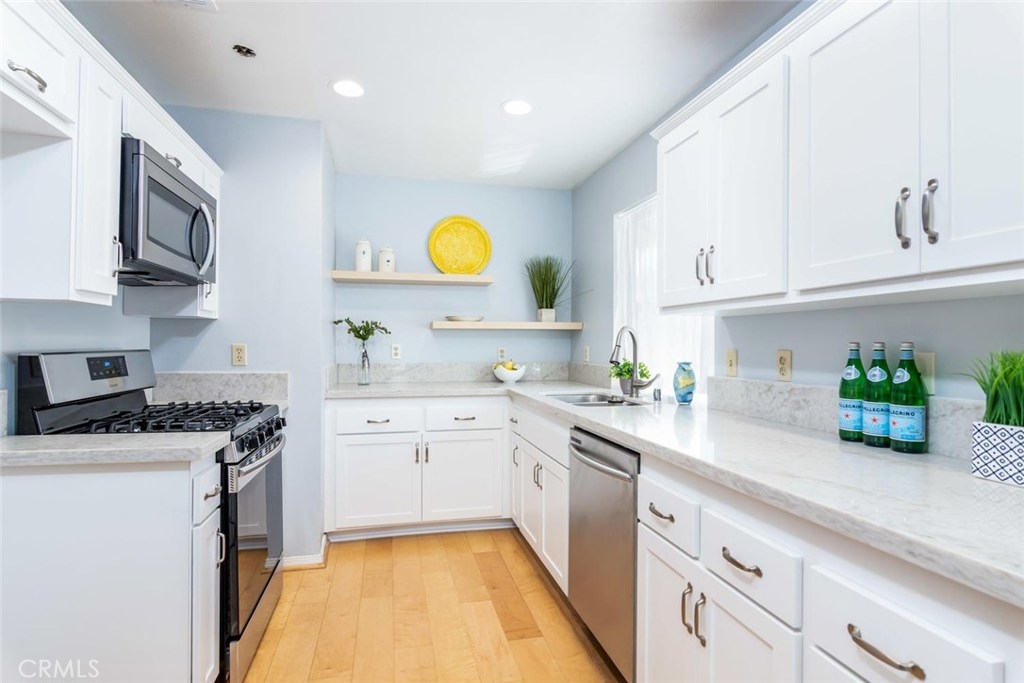 Beautifully Remodeled End Unit with only one common wall. This 2 Bedroom, 2 Full Baths condo is located above the carport so there is no one below. New upgrades include: Shaker doors and drawers, quartz kitchen counters, stainless appliances, granite tops on Shaker style vanity cabinets, refinished bath tubs, newer engineered wood flooring, fresh paint new fixtures plus more. The home has central air and heat, bay window in dining room, greenhouse window in kitchen, double wide pantry, two mirrored wardrobes in the master, private deck off the master bedroom and vaulted ceilings. The complex is situated on Village Center Drive. The shopping center next to the front entrance is going through a complete renovation. New buildings are in the works along with many new stores and restaurants including Raising Canes, In-N-Out Burger, Poke Bowl, Planet Fitness, Chase Bank just to name a few. Crosspointe Village has affordable monthly dues of $223.00 and is 100% funded for the reserves as of July 2018. This is a great place to call home.