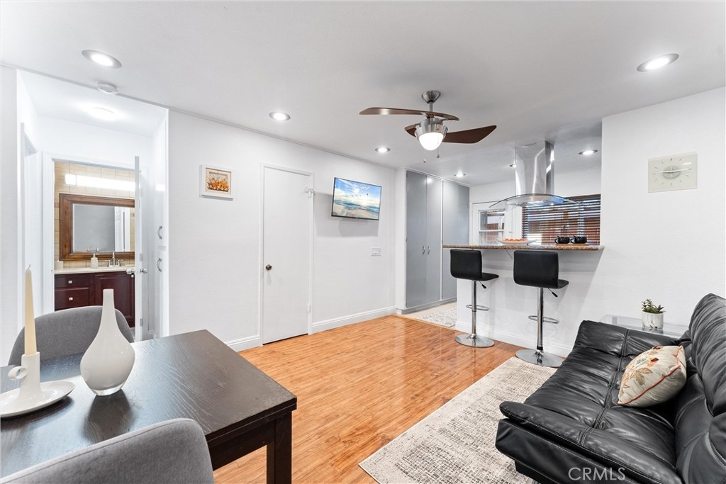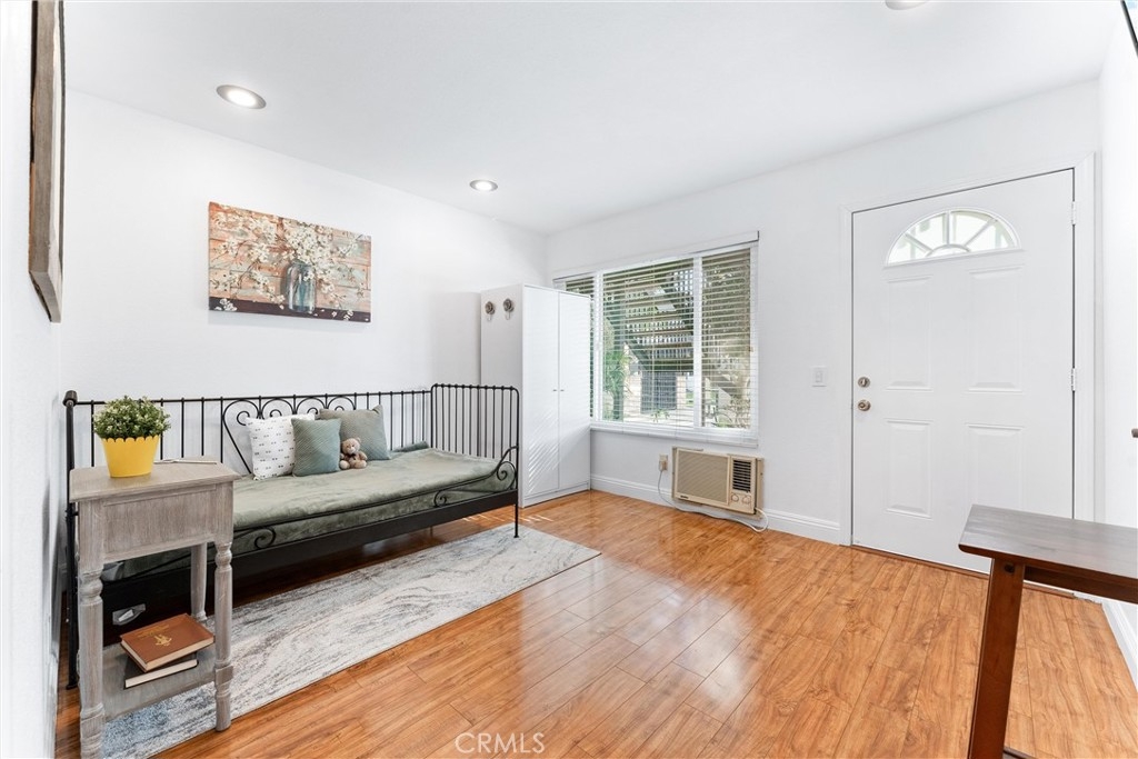 Welcome to Orange County's best valued 2 bedroom condo! This beautifully converted 2-bedroom, 1-bath condo located in the quiet rear end of the Edgewood Manor community. Originally a 1-bedroom, this remodeled downstairs unit has been redesigned to maximize space and comfort. Enjoy the convenience of in-unit laundry, dual pane windows, recess lightning, updated electrical panel, laminate floors, fresh interior paint, an open-concept living area, walk in shower and a well-appointed kitchen with granite countertops. One of the standout features of this home is the direct access to the carport, making parking and unloading groceries a breeze. The fully covered patio has laundry hook ups and plenty of storage! Low HOA which covers in-unit laundry, water and trash service. Safe, gated and clean community with security cameras on site. 2 permitted parking spaces: one assigned carport & one first come, first served. Centrally located in Orange County, close to plenty of shopping, dining, and 5 minutes from Knott's Berry Farm. Enjoy the amenities such BBQ grilling areas, bike storage, swimming pool, clubhouse and a peaceful greenbelt. With its prime location and plenty of amenities, this MOVE-IN-READY home won’t last long. Schedule your showing today!
