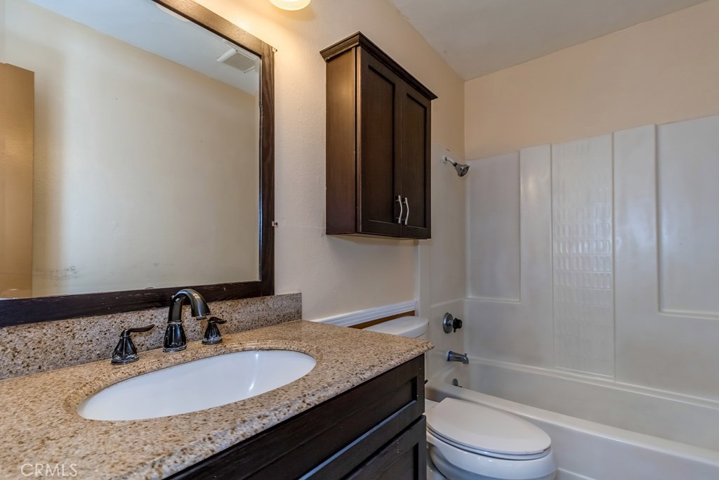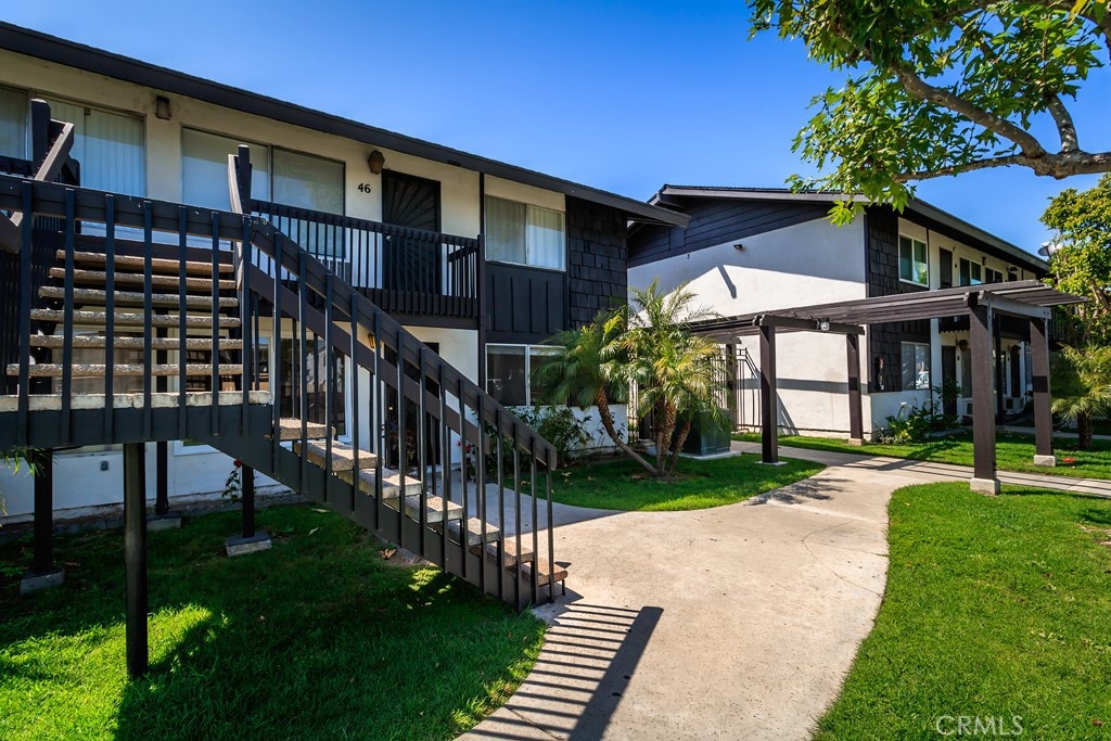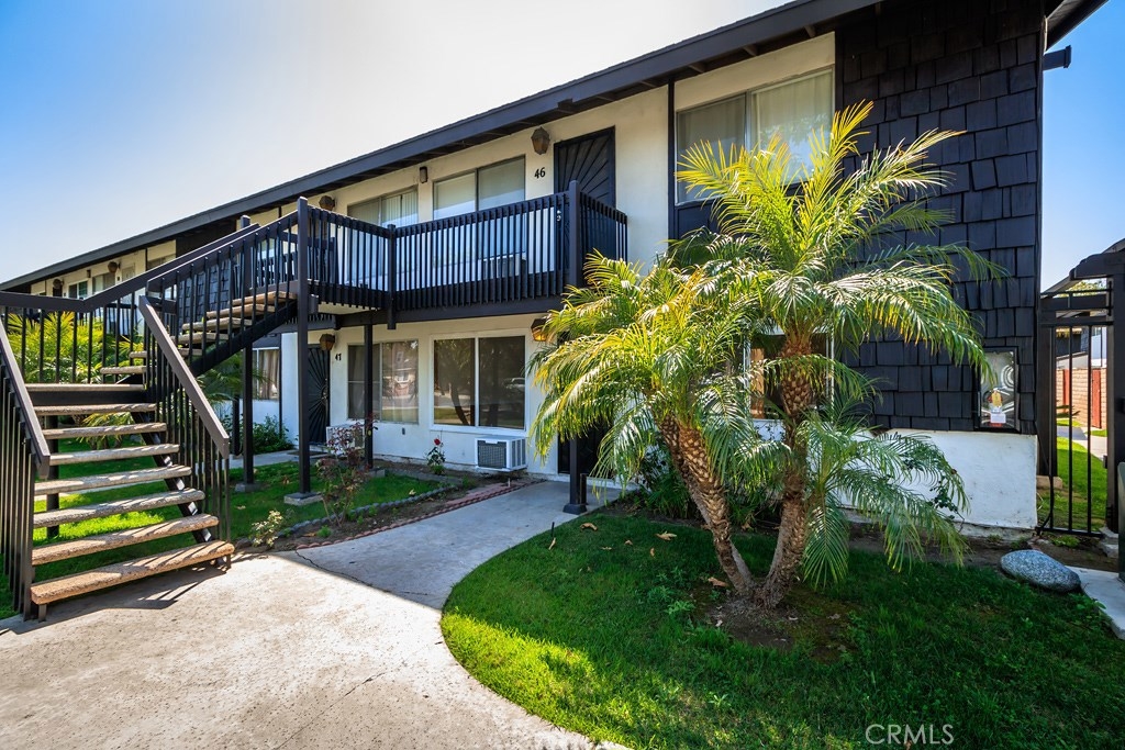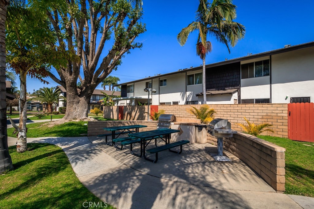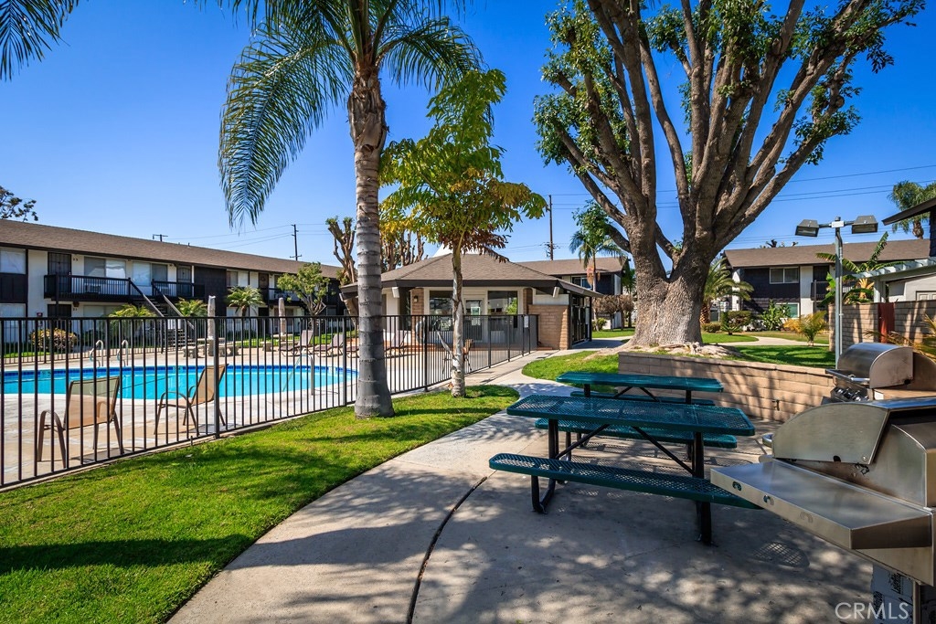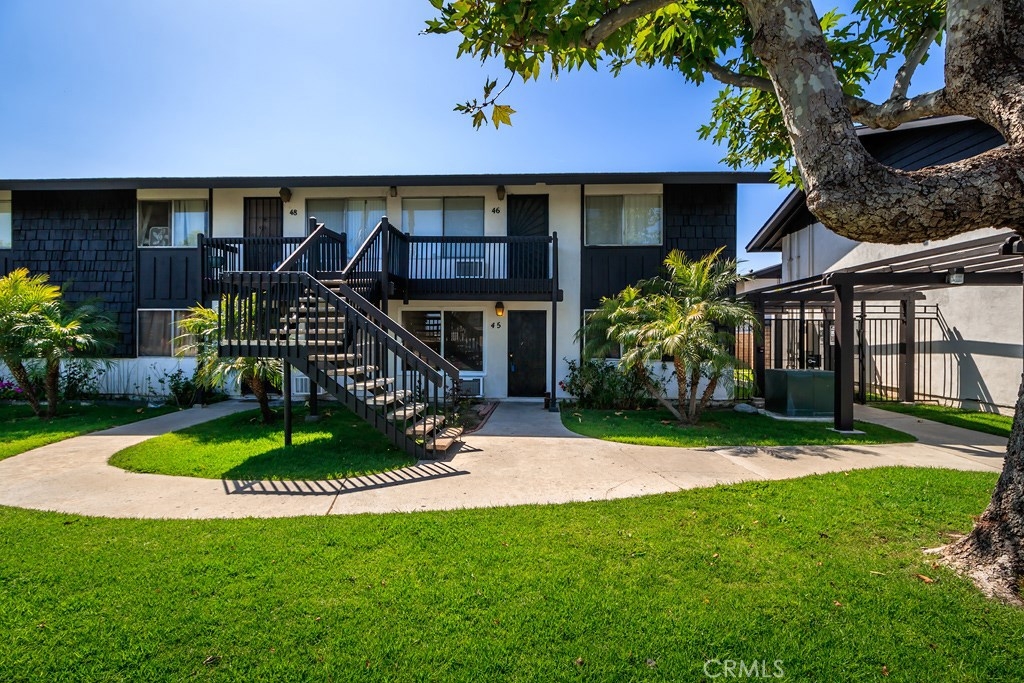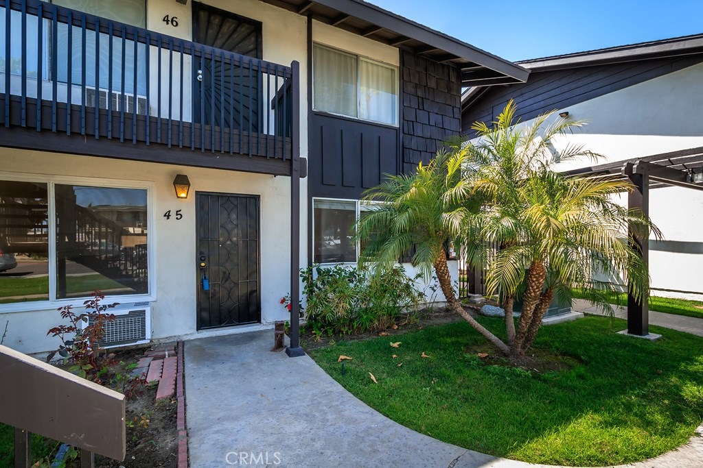 This great two bedroom, one bathroom condo is located within the beautiful gated Edgewood Community in the city of Stanton. Located on the ground level (no stairs!), this open floor plan is a must see! As you enter, you find yourself in the spacious living room, complete with a large window which allows a lot of natural light. The eating area flows very nicely into the kitchen. There are two large bedrooms with plenty of closet space, separated by a full bathroom. There is a private, gated patio at the back of the condo, right off the kitchen, which would be great for entertaining, children, or a pet. Very clean! The community includes a beautiful pool, spa, clubhouse, two bbq areas with picnic tables, spotless laundry room and beautiful green belts. This would be a great first home, family home, or investment! And you can't beat the location, being almost right in between Disneyland and Knott's Berry Farm and directly sandwiched between Anaheim and Cypress, being just about a mile to each city! (Unit is marked #45).