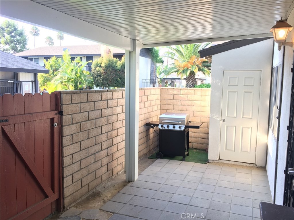 Fantastic downstairs end-unit single level condo in the gated Edgewood community. This light and bright 2 bedroom and 1 full bath condo features new wood laminate flooring, updated bathroom, roomy bedrooms with tons of closet space. With an open floor plan, the kitchen views into the dining area with ceiling fan and family room. Step outside onto your private patio with cover and storage space. This quiet complex's amenities include swimming pool and spa, clubhouse, bbq and picnic area and laundry facilities. HOA covers water and trash. Close to entertainment, schools, theme parks, shopping and restaurants. Condo unit is #33 Welcome home!!