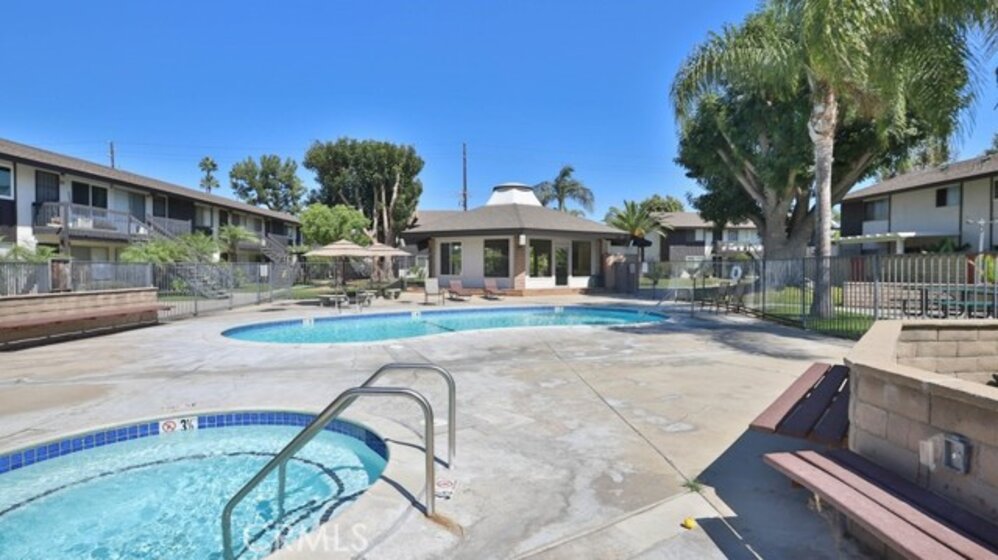 Upstairs Condo with laminate/tile floor and open dining area. Spacious two bedroom and lots of closet space. Large Living Room, Tile/laminate floor through out. It is located in the gated Edgewood Community in the city of Stanton. There are 2 parking spaces inside the gate and parking on the street. This community offers swimming pool, spa, clubhouse, BBQ picnic areas, a large community Laundry area and LOW HOA $250 monthly