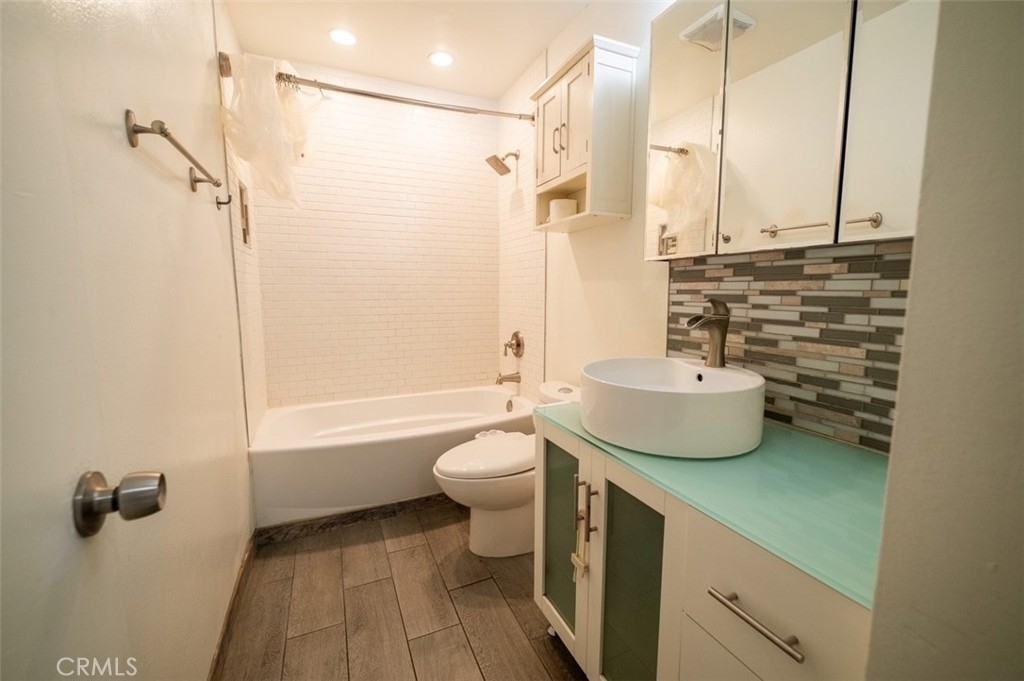 Turn-key, very clean, and comfortable 2 bedroom, 1 bath end condo unit in the beautiful Edgewood Manor community. Trash and water services are included in the HOA. This home has been updated with an elegant modern look and feel. It is in ready-move in condition. It boasts ample light and an open space. Main floor has elegant tile flooring with all bedrooms having wood flooring. Kitchen is beautifully updated with all amenities for happy cooking. The bathroom is wonderfully remodeled with a large tub with shower, modern bowl sink, recessed lighting, exhaust fan, and tile wood flooring. There is also a spacious and attached open patio having block fencing. A private and secured storage space is conveniently located in the patio. The attached outdoor patio is idle to relax, enjoy, and perfect space for outdoor cooking. This community has a beautiful pool, club house, barbeque picnic area, secured bike lock area, etc. The Unit is located in a gated community which includes 2 parking spaces both covered and un-covered. Additional free parking for guest is available down Bell st just before the cul de sac. This unit is conveniently located to all freeways, shopping centers, parks, house of worship, hospitals, and more points of local interest.