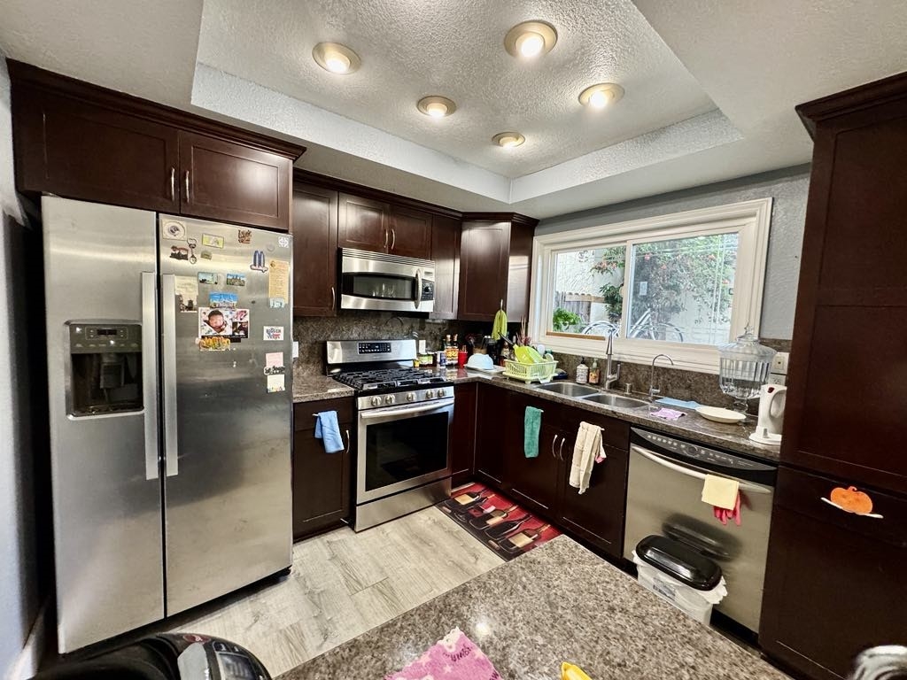 Huge Price Improvement! Rare Opportunity: Charming Townhome in an Intimate Complex! Don't miss your chance to own a delightful townhome in this highly sought-after complex with only eleven units – homes here are rarely available! This two-story hidden gem features two spacious bedrooms and 2.25 bathrooms. Enjoy the benefits of a low HOA fee of just $210/month, covering landscaping, exterior maintenance, and trash collection. The first level welcomes you with an inviting living room complete with a cozy fireplace and durable laminate flooring. You'll appreciate the well-laid-out kitchen featuring granite countertops. Connecting the kitchen to the detached two-car garage is a private courtyard, offering a secluded open-air space perfect for relaxing or indulging your green thumb. Upstairs, the laminate flooring continues into two large bedrooms. A convenient stackable laundry area is also located on this floor. Perfectly situated in a prime location, this property is just a short drive from both Disneyland and Knott's Berry Farm. Commuting is a breeze with excellent access to the 22, 91, 5, 405, and 605 freeways. This home truly is a commuter’s dream!