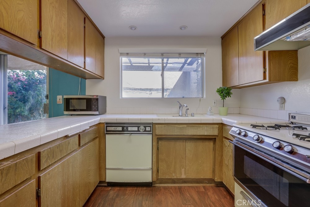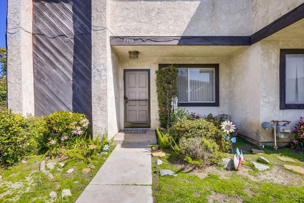 Rare Townhome Opportunity – One of Only Eleven Units! Welcome to this charming two-story end unit townhome, offering both space and convenience in a sought-after community. With only eleven units in the entire complex, this home is a rare find! Two Spacious Bedrooms: Both bedrooms feature en-suite bathrooms with new toilets, providing ultimate privacy and comfort. Large closets in each bedroom offer ample storage. Second story laundry: Hookups for stackable washer and dryer. Plenty of Storage: This home is designed with functionality in mind, boasting extensive storage throughout, including large closets in the bedrooms, a generous pantry, and plenty of space in the garage. Two-Car Garage & Additional Parking: Enjoy the convenience of a two-car garage with an extra parking space behind it. Affordable HOA Fee: The monthly HOA fee of just $210 covers landscaping, electricity and water for exterior areas, trash services, and roof maintenance – offering great value. Perfect for Guests: A convenient downstairs bathroom is ideal for guests, adding to the home's overall functionality. Prime Location: Short drive to both Disneyland and Knott's Berry Farm with easy access to multiple freeways (The 22, 605, 5, 405, and 91), this home offers a commuter’s dream. Plus, you’re just moments away from a wide range of dining and shopping options, including Target, Food 4 Less, and Vons. Customization Opportunity: This home is being sold as-is, giving you the perfect opportunity to add your personal touch and make it truly your own. Buyer's agent to verify all information.