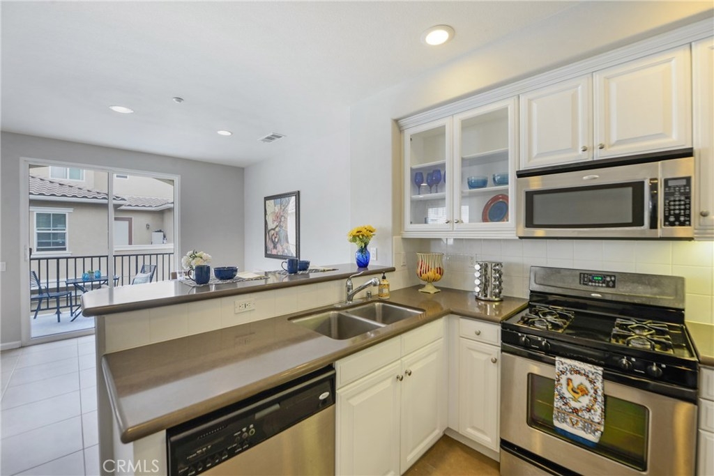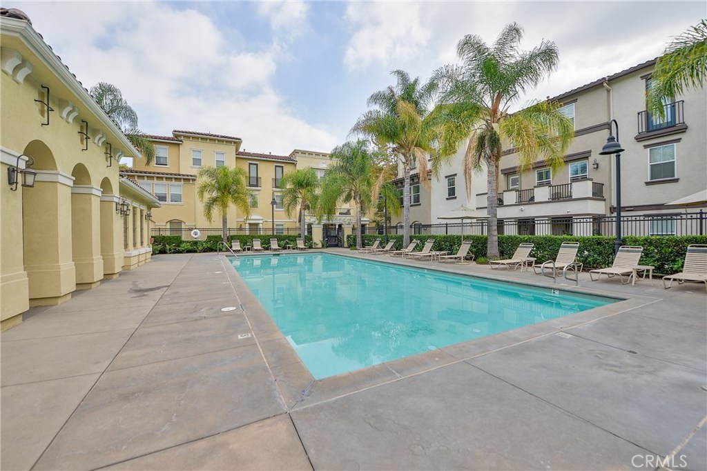 An absolute must see, this beautifully upgraded end unit in the highly desirable Palazzo Community. Built in 2007, the 1,389 square-foot home offers two bedrooms; 2.5 bathrooms; and a master bedroom with an ensuite bathroom. You will fall in love with the open concept living with high ceilings opening up the living room and dining room with the warm fireplace as a perfect focal point. The beautiful kitchen showcases upgraded white cabinets, stone counter tops, stainless steel appliances and sink with plenty of storage. The private balcony is perfect for relaxing, dining and entertaining. Other amenities include a newly painted interior, recessed lighting, plantation shutters, tile flooring and wood flooring, making this lovely home ready for your personal decorating touch. There is an inside laundry area which accommodates full washer and dryer on the main level. The two car attached garage has direct access to the downstairs entry. The Palazzo Community features well maintained grounds with an impressive pool area featuring: large pool, spa and an outdoor living space with fireplace, bar-b-ques and plenty of tables for outdoor dining. A must see.
