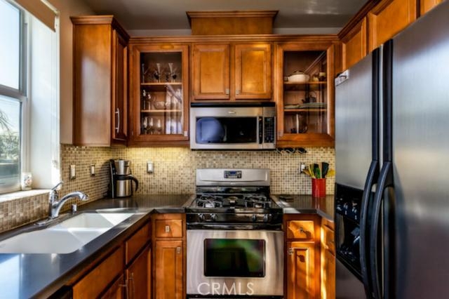 Reduced! The Palazzo at Renaissance Plaza. The well-maintained tri-level 2 bed 3 bath home made by Taylor Morrison is rare to see on the market. Boasts an office niche area at ground level. As you walk up the stairs you'll see your elegant kitchen with stainless steel appliances and siltstone countertops. Which are all included with this sale. This is great for entertaining as you notice the kitchen is open to the dining area. The living area also comes with surround speakers great for entertaining. On the same level is where you'll find the laundry room with a half bath that includes italian tile and access to a balcony. As you come up the stairs you'll see the full bath to the left. This is where the two rooms are located. The master bedroom has surround speakers installed (included) The master bath has a separate shower from the bath with his and her sinks to freeways 91,22,405, major amusement parks, shopping plazas, work communicate and the beach. Parking is ample, BBQ area, covered lounge area with fireplace, and community pool/ Jacuzzi area just a few amenities why people are flocking to this community.