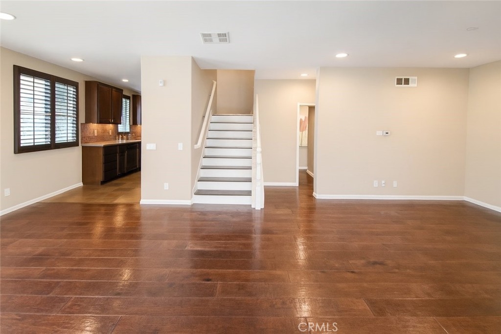 Just Beautiful and a MUST SEE! This very well maintained 3-level townhouse complex is located in a bustling city with many new booming businesses, homes, condos and apartments. Another value-add benefit to this home is the unique building END-UNIT location just STEPS AWAY from the community resort style POOL/JACUZZI and Abundance upgrades features found throughout home: High ceilings, authentic handcrafted WIDE-PLANK HARDWOOD flooring throughout, PLANTATION SHUTTERS, balcony curtains and disappearing screens for added privacy and seclusion, upgraded kitchen and stonework throughout home, brand new electrical outlets, new baseboards and base molding, upgraded granite countertops in primary bathroom, new light bulbs replaced throughout home, brand new bedroom ceiling fan, 2 new bathroom sinks with high pressure water, and an upgraded shower sliding glass door in the guest bathroom. Additionally, this unit has a whole house water softener system. Excellent and convenient location close to Knott’s Berry Farm, Disneyland, Rodeo 39, some of Orange County’s best restaurants, shopping centers, and many more desirable amenities. Centrally located just miles away from the 22/5/91/39/405 freeways and seconds away from delicious dining options. MOVE-IN CONDITION. BEAUTIFUL, CLEAN, AND WELL KEPT! Come See this Beauty to appreciate.
