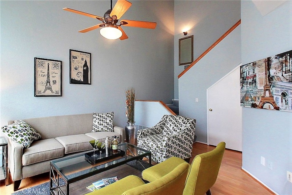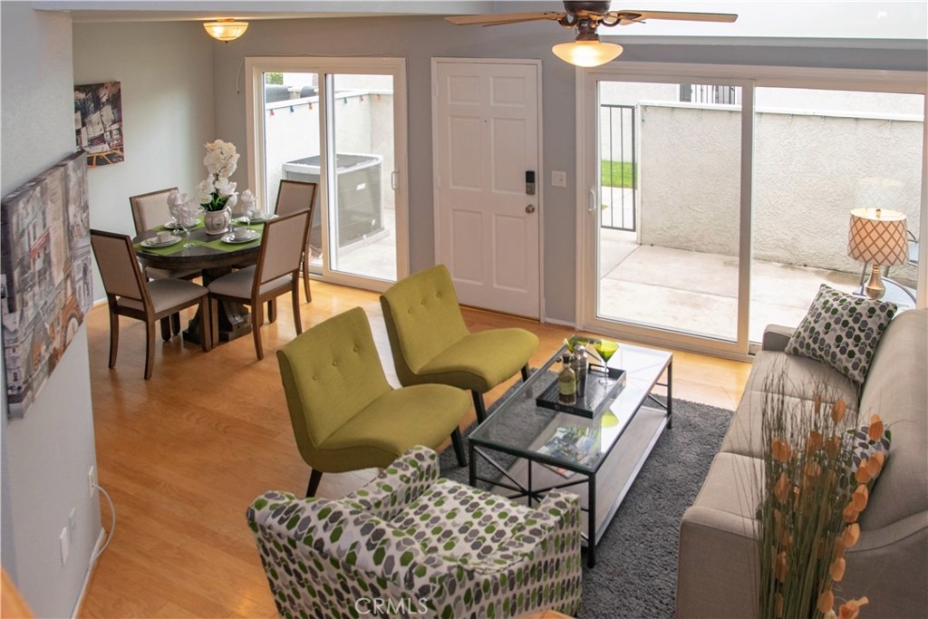 Here is a beautiful opportunity to own a two bedroom two and a half bath with an attached two car garage in the fully gated community of Park Villas. There are only thirty one units here making it a very enjoyable place to live. This complex is well maintained. The pool and sports court have been resurfaced just in time for summer. Brand new carpet and paint compliments the condo nicely. The outside patio is fully finished with concrete all you have to do is bring your potted plants and decorate with your special touches. This unique condo is also hooked up to a soft water tank. Windows and sliders are newer which really help with lighting, heat and cooling. Family room and both bedrooms have ceiling fans. Park villas is close to new restaurants and within walking distance to Stanton central park. This condo is ready for you to call it home!