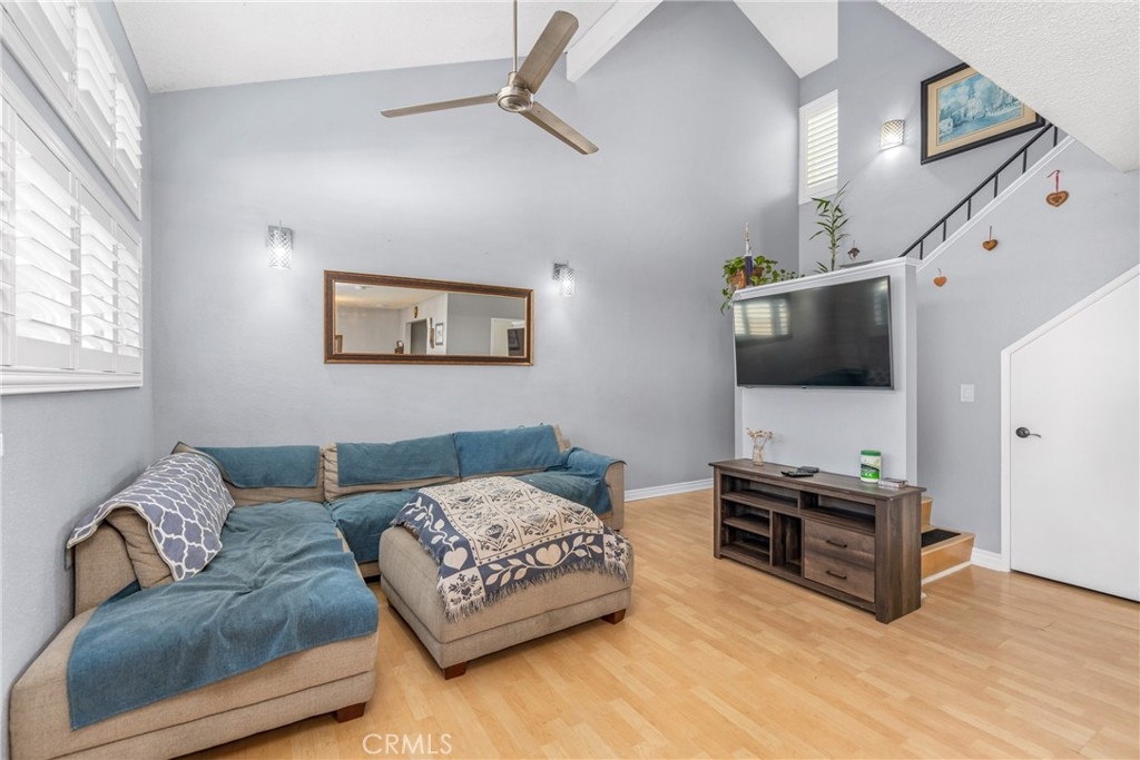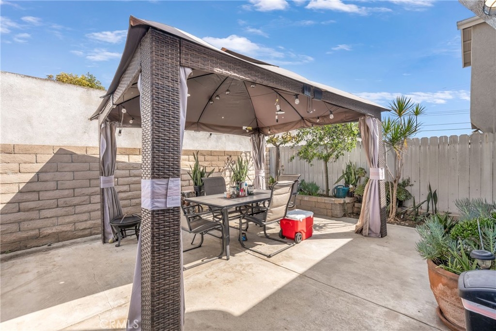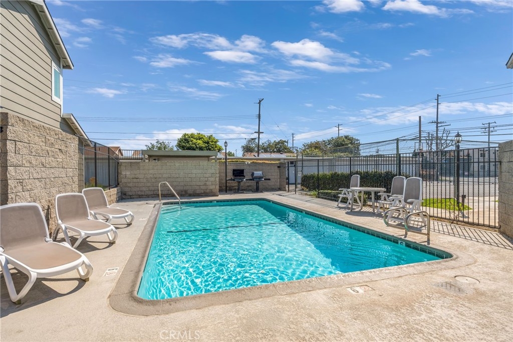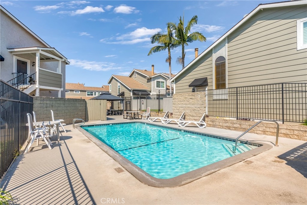 Welcome to this charming and centrally located 3-bedroom, 2.5-bathroom condo nestled in Stanton. Situated within a gated complex, this property offers both security and convenience, with a community pool area for residents to enjoy. Upon entering, you'll be greeted by a thoughtfully designed layout on the ground floor. The updated kitchen boasts tile flooring and modern appliances, making meal preparation a breeze. The living area features elegant shutters, creating an inviting atmosphere. Step outside to the cozy and private rear yard, perfect for relaxing or entertaining guests. Additionally, a convenient guest half bathroom is located downstairs for added convenience. Upstairs, you'll find a guest full bathroom along with two generously sized guest bedrooms, each offering access to a large balcony overlooking the community. Large balcony provide space to unwind and soak in the surrounding views. The master bedroom, boasting ample space and natural light. With plenty of storage options and a well-appointed master bathroom, this space offers both comfort and functionality. For added convenience, this property includes a spacious attached 2-car garage with laundry facilities, ensuring that daily tasks are completed with ease. Don't miss the opportunity to make this delightful condo your new home. With its desirable location, gated community that offers a wonderful blend of comfort and convenience. Amenities include pool and spa, basketball court and BBQ area... Complex is also pet friendly.