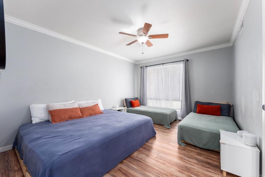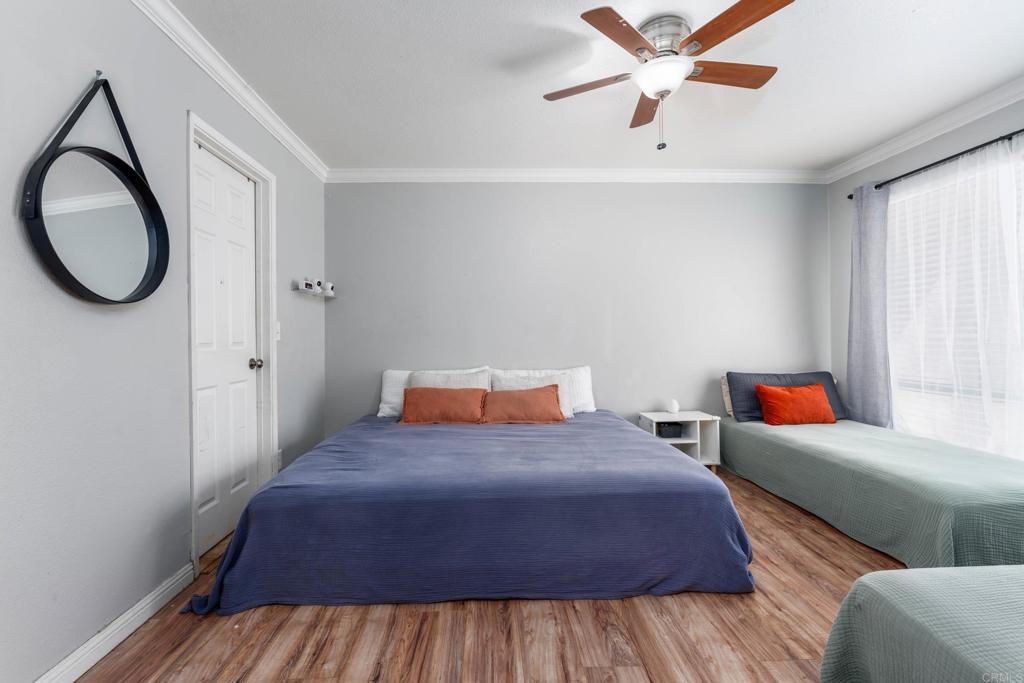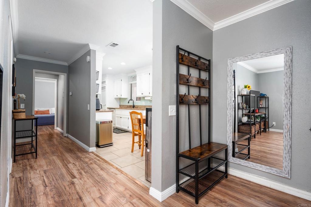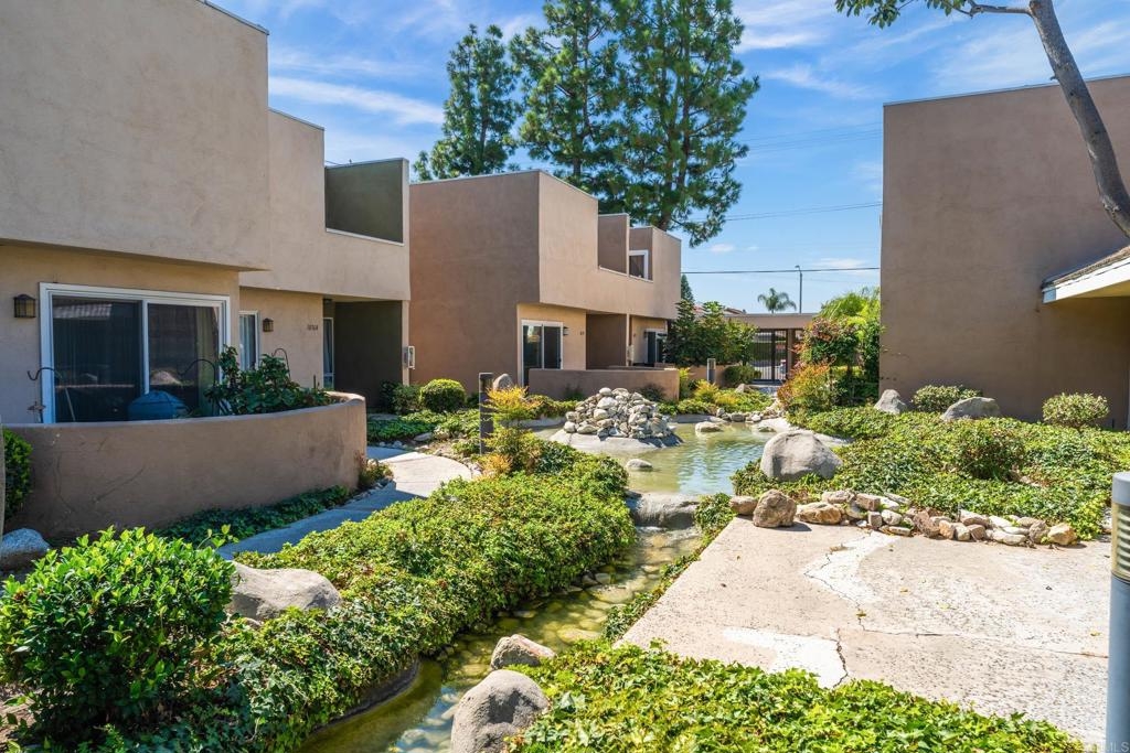 Charming Pine Creek Retreat: Discover this lovely 2-bedroom, 1-bathroom single-level end unit tucked away amidst the peaceful streams and picturesque landscaping within the secure gates of the Pine Creek community. The residence features wood laminate and tile flooring, scraped ceilings, crown molding, ceiling fans, raised-panel doors, convenient in-unit laundry, and air conditioning system. The kitchen is equipped with granite countertops, a stainless steel sink, recessed lighting, and a recently upgraded gas range with a built-in microwave vent. Additionally, the spacious and private outdoor area extends the full length of the unit. A two-car garage is also included. Residents can relish the Southern California lifestyle with access to the community pool and spa. Schedule a viewing today to experience this inviting Pine Creek gem!