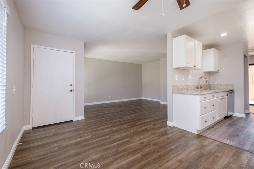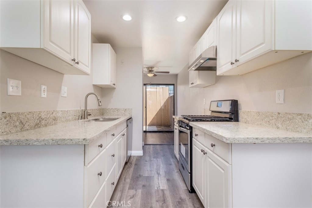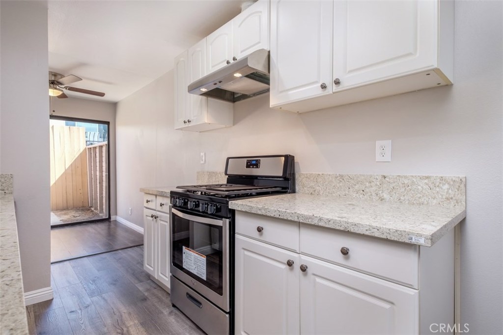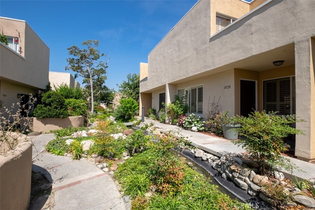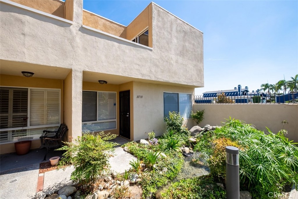 Truly Tranquil Landscaping with stream flowing throughout this beautiful Pine Creek Condo Community. Wow, Beautifully Remodeled home. End unit with no one above or below. All new interior paint, new quartz countertops in the kitchen and bathrooms, new stainless steel appliances, new sink in kitchen, new hardware, new laminate flooring throughout, new ceiling fans, new window blinds, new toilets, new vanities in bathrooms, new light fixtures, scraped ceilings. Large living room and nice size dining area. Inside laundry room space. Sliding glass doors lead to the out door patio area. Upstairs has a grand master bedroom with walk in closet and spacious balcony over looking the water feature in complex. Plenty of room upstairs for a 2nd bedroom or a huge loft area. 2 car garage with some storage. Gated Community pool and 2 Jacuzzis. Condo is centrally located near restaurants, shopping, schools and Knotts Berry Farm.