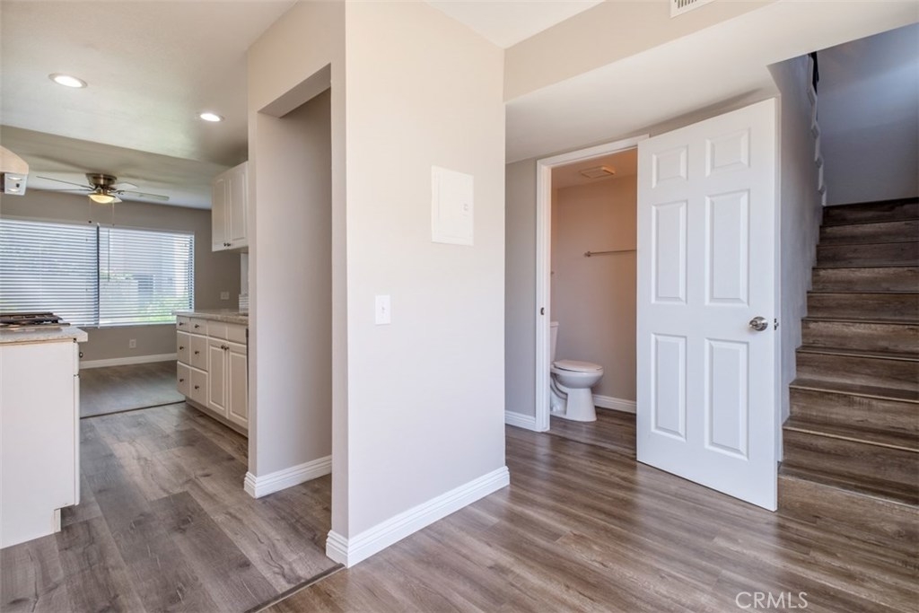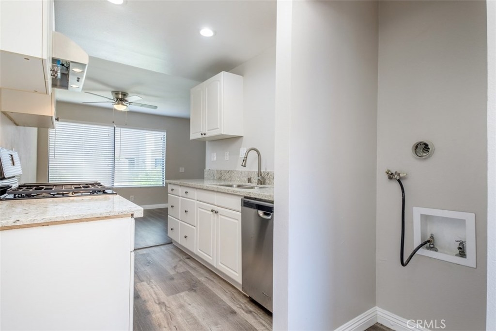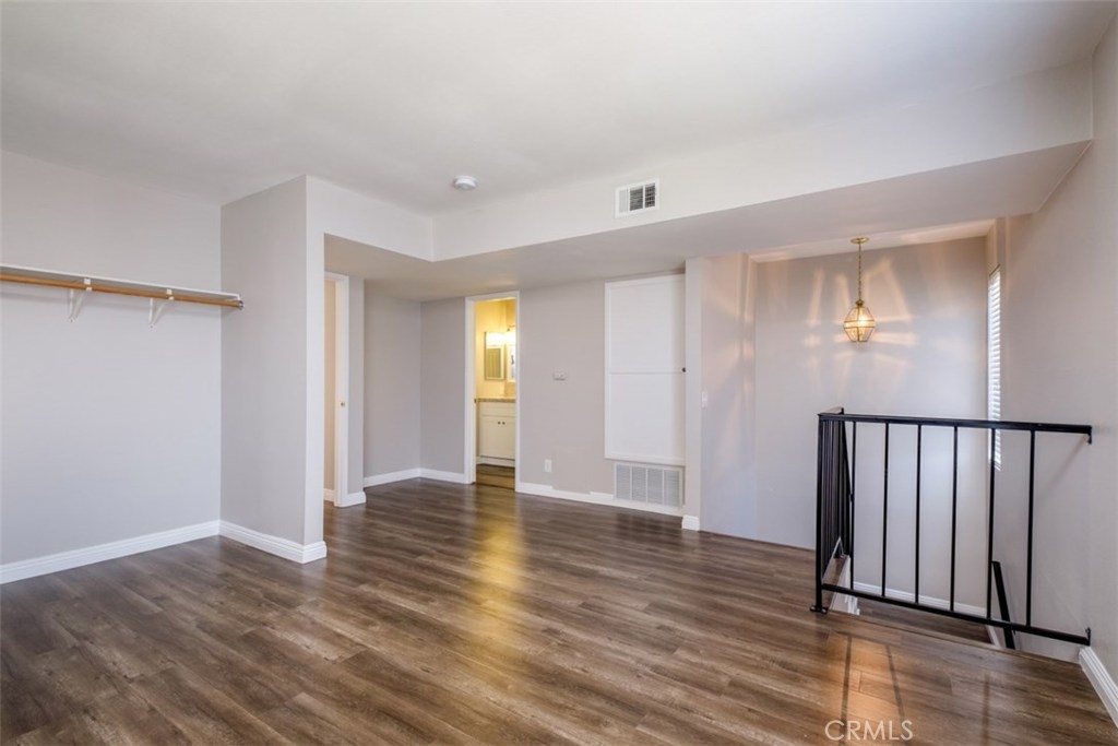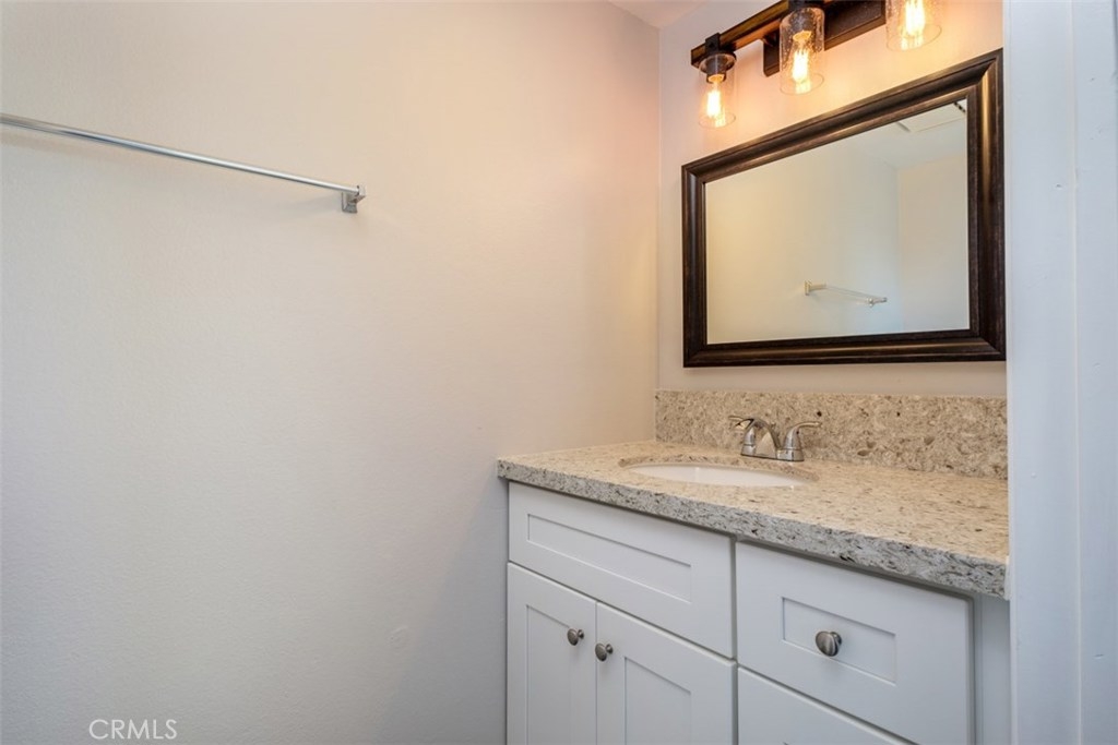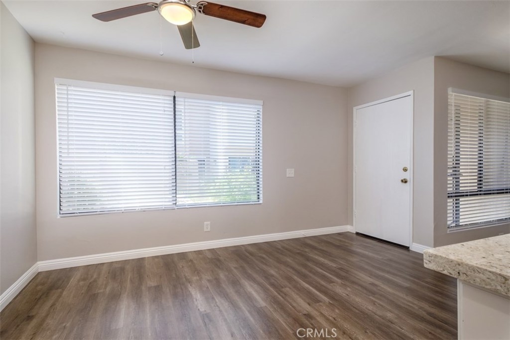 Truly Tranquil Landscaping with stream flowing throughout this beautiful Pine Creek Condo Community. Wow, Beautifully Remodeled home. End unit with no one above or below. All new interior paint, new quartz countertops in the kitchen and bathrooms, new stainless steel appliances, new sink in kitchen, new hardware, new laminate flooring throughout, new ceiling fans, new window blinds, new toilets, new vanities in bathrooms, new light fixtures, scraped ceilings. Large living room and nice size dining area. Inside laundry room space. Sliding glass doors lead to the out door patio area. Upstairs has a grand master bedroom with walk in closet and spacious balcony over looking the water feature in complex. Plenty of room upstairs for a 2nd bedroom or a huge loft area. 2 car garage with some storage. Gated Community pool and 2 Jacuzzis. Condo is centrally located near restaurants, shopping, schools and Knotts Berry Farm.