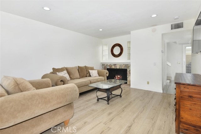 Beautiful Move-In ready 2 bedroom 1.5 bath home in the gated and sought-after Pine Creek community. Set alongside the soothing and tranquil creek that meanders through the community, this home features an upgraded kitchen with granite counter tops, stainless appliances and recessed lighting. The large living room has a cozy stone front fireplace with custom recessed shelves, recessed lights and newer laminate flooring. Other amenities include a private rear patio, a spacious master bedroom with balcony that overlooks the flowing stream below, newer paint throughout, newer AC and heater, dual pane windows , textured ceilings and a 2 car detached garage. Enjoy the nearby private community pool and spa while close to parks, schools, shopping and entertainment.