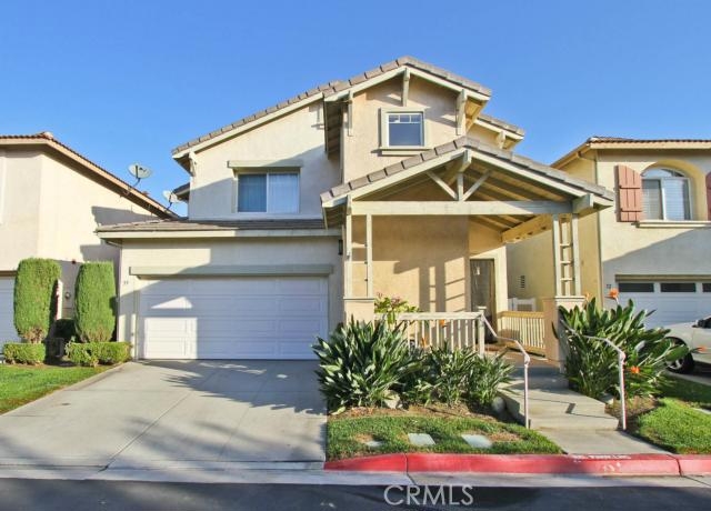This very well maintained and gorgeous 2 story home with 1,335 sq. ft. of living space offers 3 bedrooms, 2.5 baths, and an attached 2 car garage. Home is located near the gated entrance of the Serena community with plentiful guest parking in the front. All 3 bedrooms are upstairs, including a master bedroom that has vaulted ceiling, a full bath featuring a dual sink vanity and walk-in closet with mirrored doors. 2nd bedroom features a good size walk-in closet and direct access door to the 2nd full bath. 3rd bedroom features a ceiling fan and mirrored closet doors. Downstairs has a great open floor plan with a half bath, living room and kitchen. The living room features 2 story ceiling, a fire place and an abundant amount of natural lighting from surrounding windows. Living room opens to the in-dining kitchen with granite counter tops, ample cabinetry, track lighting, modern appliances and pantry. Recessed lighting throughout the home. The sizable backyard with lovely various plants and trees is accessible through a sliding glass door from the kitchen, making it a great extra space, perfect to entertain family and friends. Walking distance to the Stanton Park and is centrally located near freeways, shopping centers, restaurants, and schools.