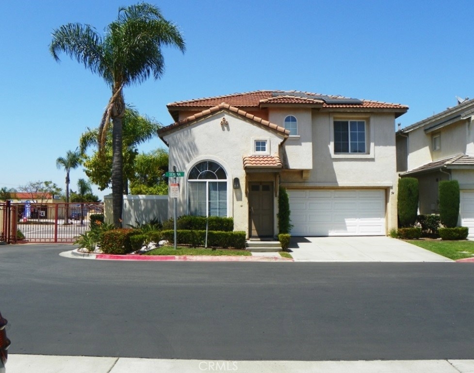 Located in the Serena Subdivision, along Katella Ave. at Beach Blvd, this two-story, detached condominium, built in 1999, is one of the rarest gems to be on the market, well-maintained and updated, with three bedrooms (4th bedroom converted to office), 2.5 bathrooms, 2-car attached garage with direct access, open floor plan, high cathedral-vaulted ceiling, giving you the aura and ambience of the spacious living room and into the wide dining and kitchen area, with wood-look ceramic tile flooring. Stairs has carpeted steps and all the way up to hallway and bedrooms with Berber carpet. Leased solar panels are installed on the roof and transferable to new owner, and you only pay for usage, thus saving on electricity bill. Home has water softener installed, and fire sprinklers. Close to retail establishments and supermarket. You won't want to miss this opportunity to own this home in this gated community. Price per square foot is below average, only $361/sqft. Monthly HOA fee is only $99. Come and see for yourself!