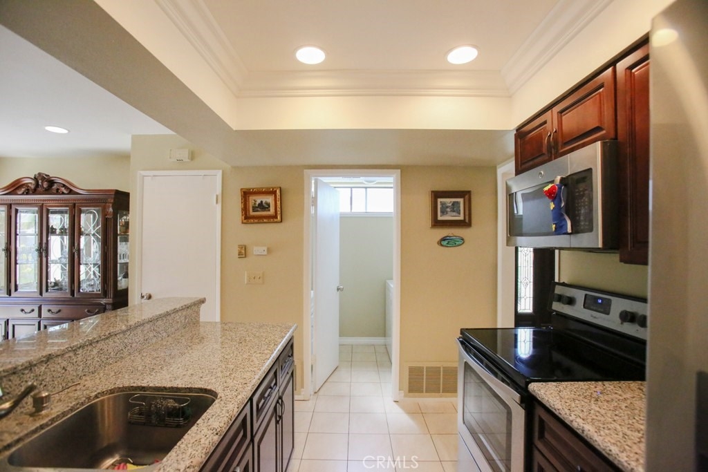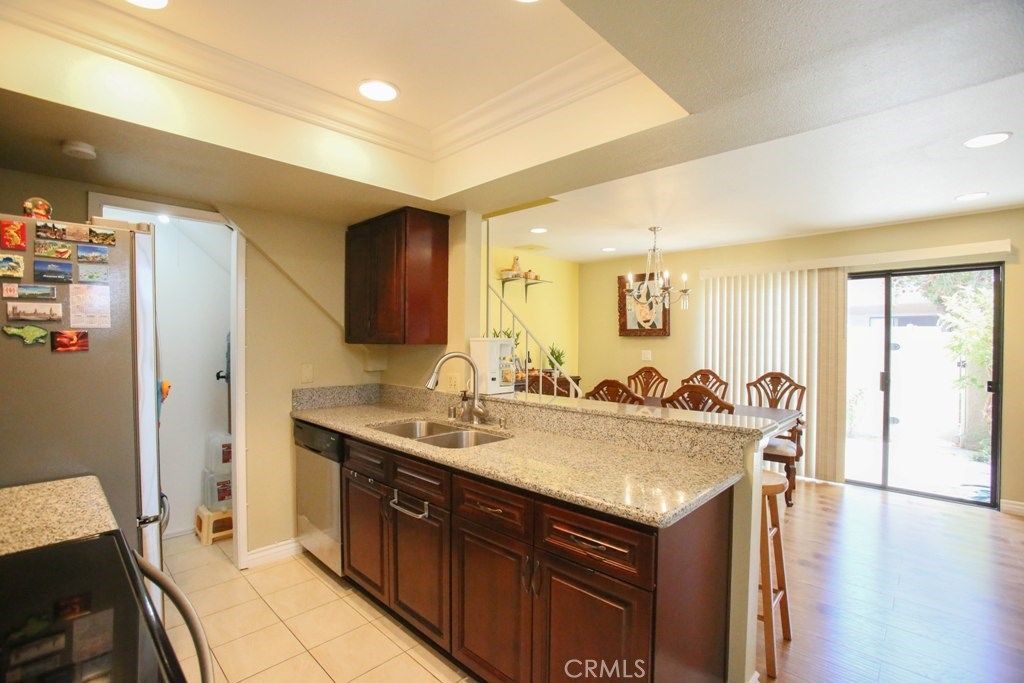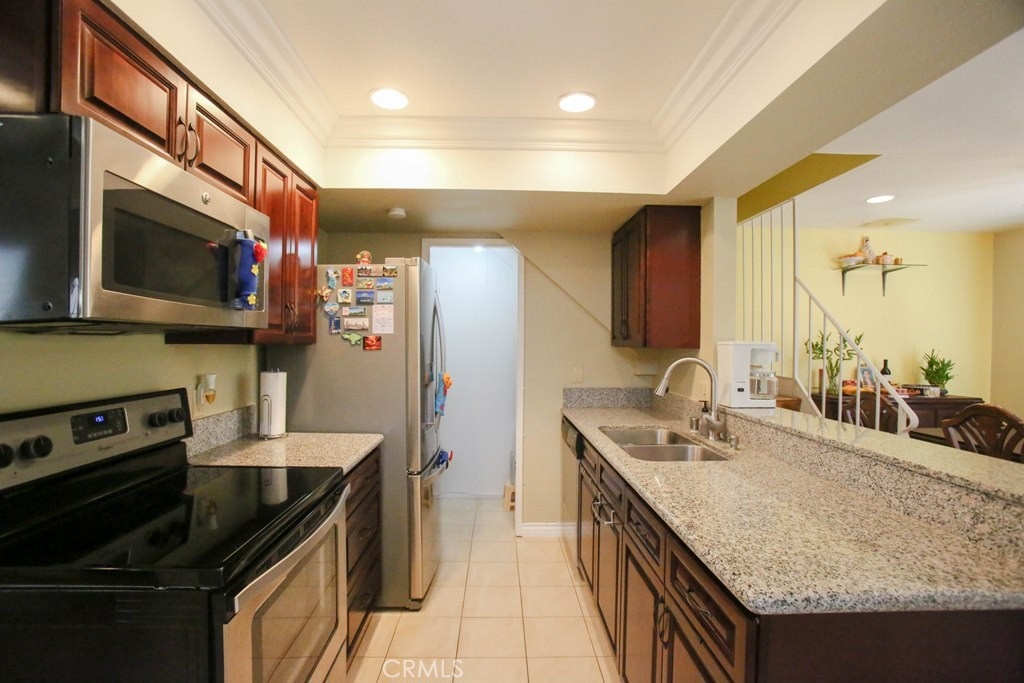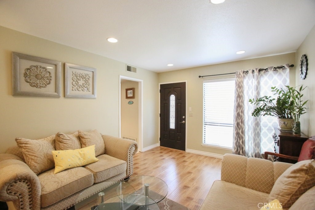 Very beautiful remodeled townhouse with single family style : 2 entrances back and front. Bright and clean house with 2 levels with 3 bedrooms upstairs. 2 car garage attached and lots of parking spaces on street. All remodeled with LED recessed ceiling lights, wood color laminate floor, kitchen granite counter top with breakfast bar counter. Central Heat . Sale price includes washer and dryer and the fridge. Walking to common pool. Minutes to freeway, shopping center.
