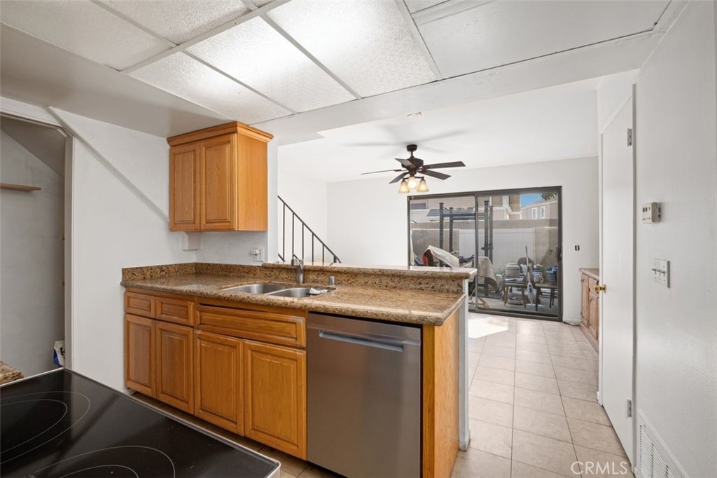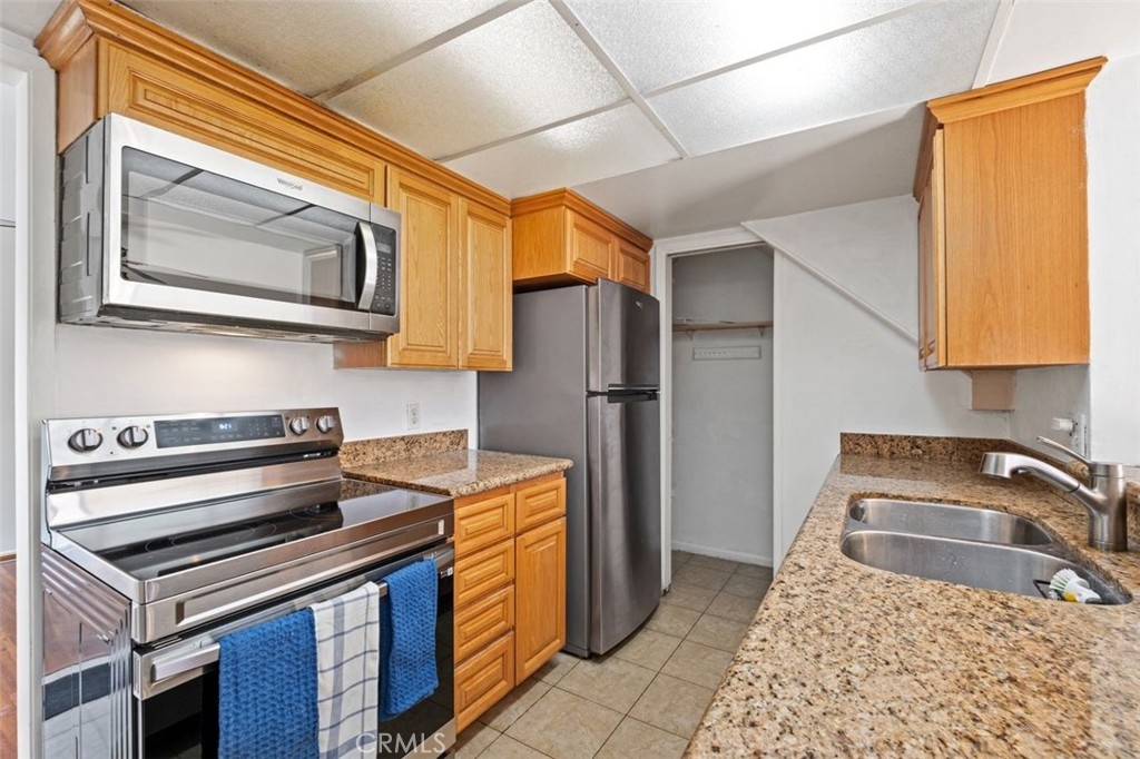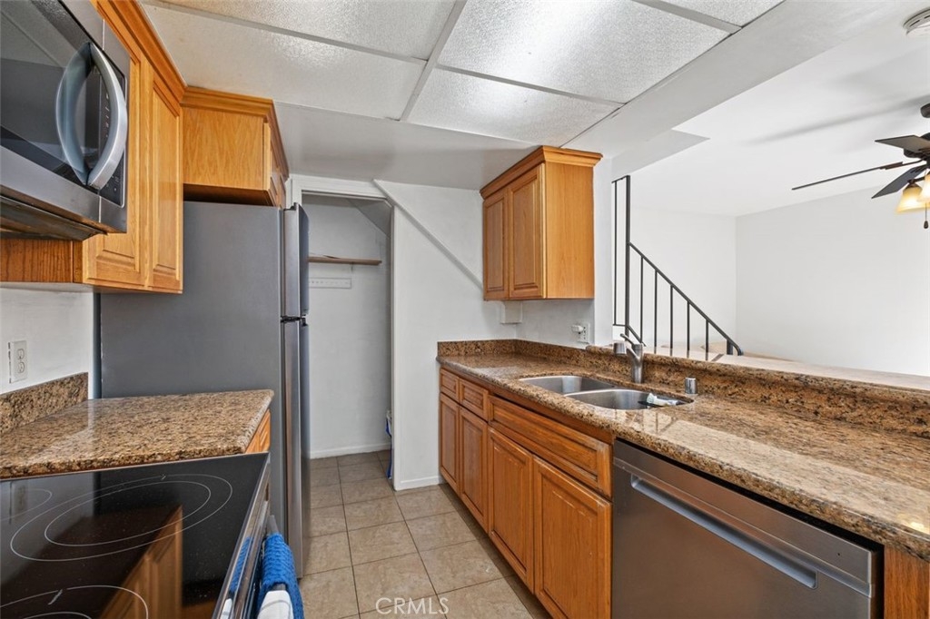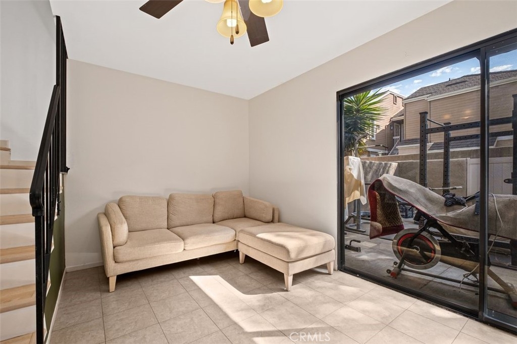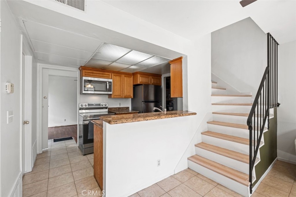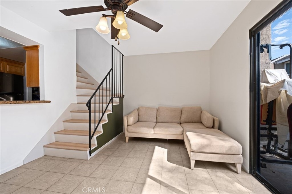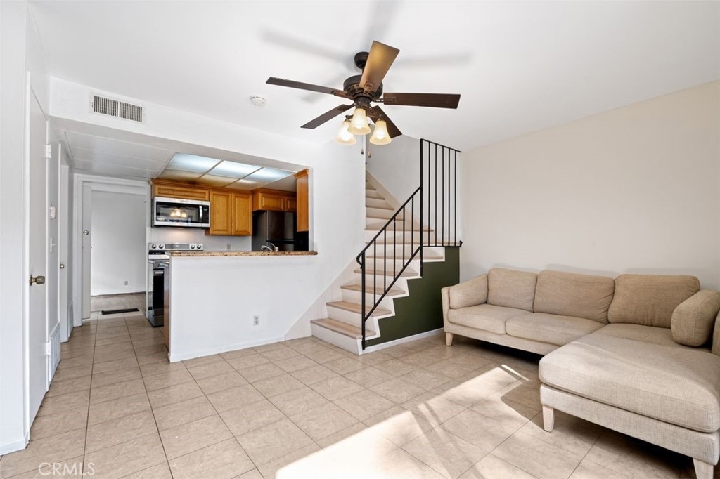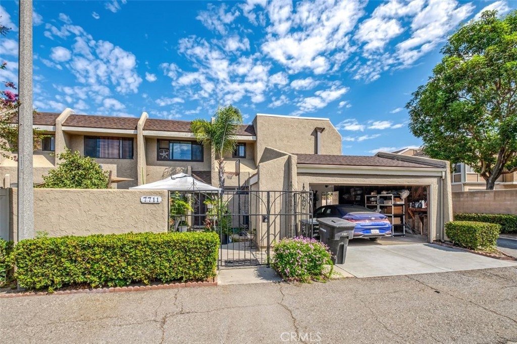 Welcome to this 3 bedroom 1.5 bath townhome with 2 car attached garage in the heart of Stanton. Great location on its own little cul-de-sac. Enter through the private gated front patio. A spacious formal living room has wood style flooring for easy maintenance. The gourmet kitchen has stainless appliances: new electric oven, also offers dishwasher and microwave. Granite counter tops, wood cabinetry and large walk-in pantry. Kitchen flows into the large family/dining room with tile flooring and ceiling fan. Large sliding glass door opens into a spacious private patio. 1/2 bath downstairs with inside laundry. New flooring on staircase. Upstairs has 3 bedrooms and full bath and shower. Large 2 car attached garage with direct access through the patio. This is a great opportunity to own your first Home or a second investment home. Interest rates are coming down so don't miss this....