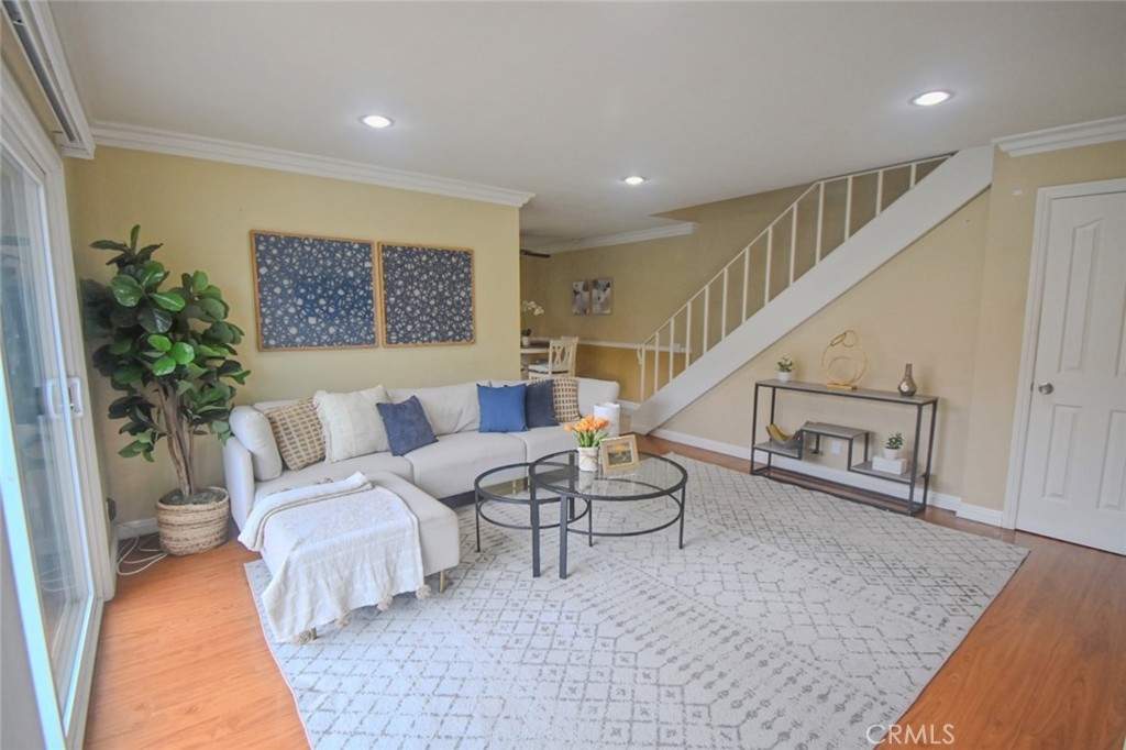 Welcome to this fantastic townhouse nestled in a serene, green community! This spacious home boasts 4 bedrooms, 2 full baths, and an attached double car garage with private laundry hook-ups for added convenience. Step outside onto your own private patio, or enter through the separate kitchen door for easy access. The master bedroom impresses with its high ceilings, adding to the sense of openness and comfort throughout. Ample storage spaces make organization a breeze, ensuring everything has its place in this cozy retreat. Located in a quiet and safe neighborhood, residents here enjoy access to a large pool and recreational center, perfect for unwinding or staying active. Plus, you'll find yourself conveniently close to an array of restaurants, markets, and shopping options, with easy freeway access for added convenience. This end unit is an ideal choice whether you're looking for an investment property or dreaming of making it your primary residence. Don't miss out on this opportunity to call this wonderful townhouse your new home!
