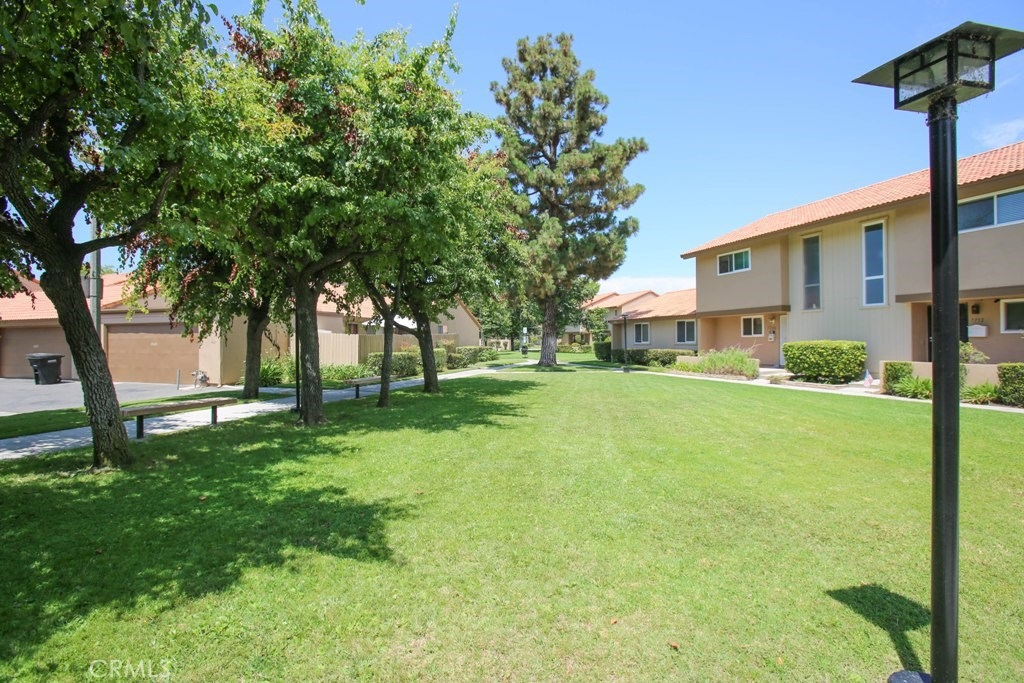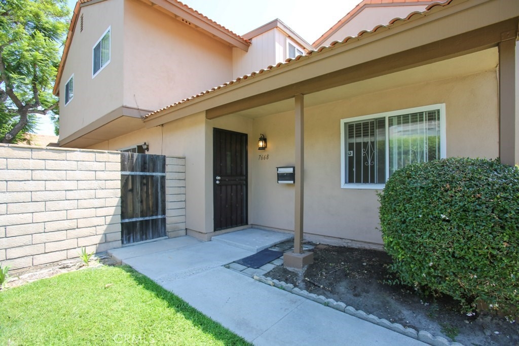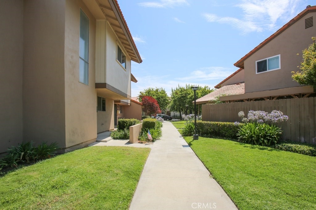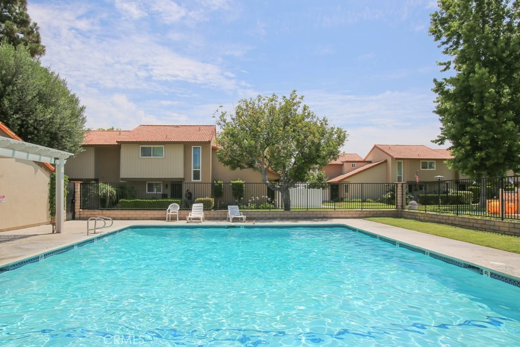 Two Story, nice floor plan and very spacious home is ready for new family. Family oriented and Pet friend complex with LOW HOA . End unit with direct car garage access, 4 bedrooms & 2 baths, over 1400 square feet of living area, and a master bedroom on main floor. New paint and new water resistant laminate wood floors. Recessed lighting thru out the entire home. New kitchen quartz countertop , new window blinds and new water heater. Cathedral ceiling in the master bedroom with mirrored closet doors. Association Includes pool and clubhouse along with large grass areas and playground for kids. . HUGE open patio which makes it great for BBQ and entertainment. Laundry is in the 2 car garage attached to the home. Very desirable area near schools, shopping, restaurants, all major freeways, Knott’s Berry Farm. A MUST SEE TO APPRECIATE!!