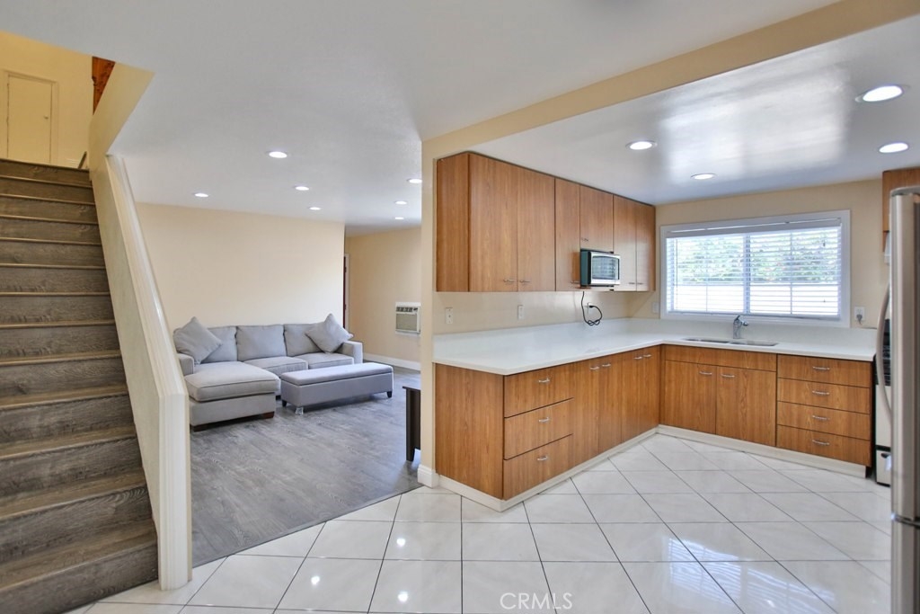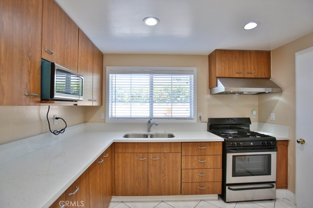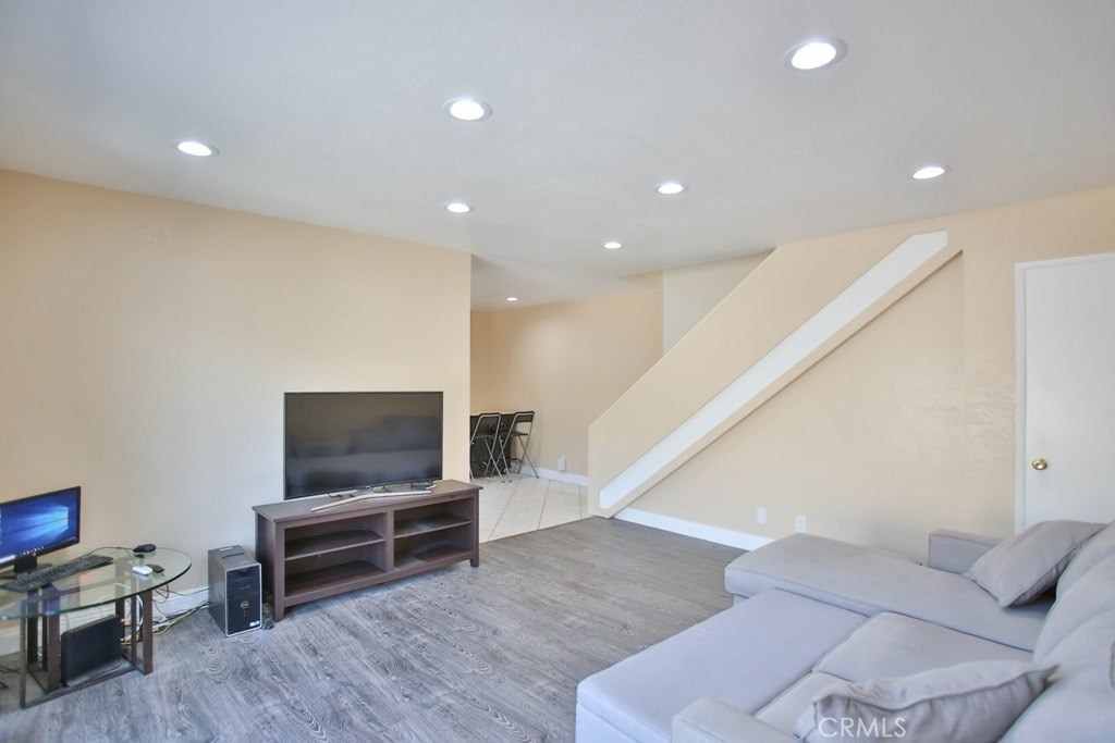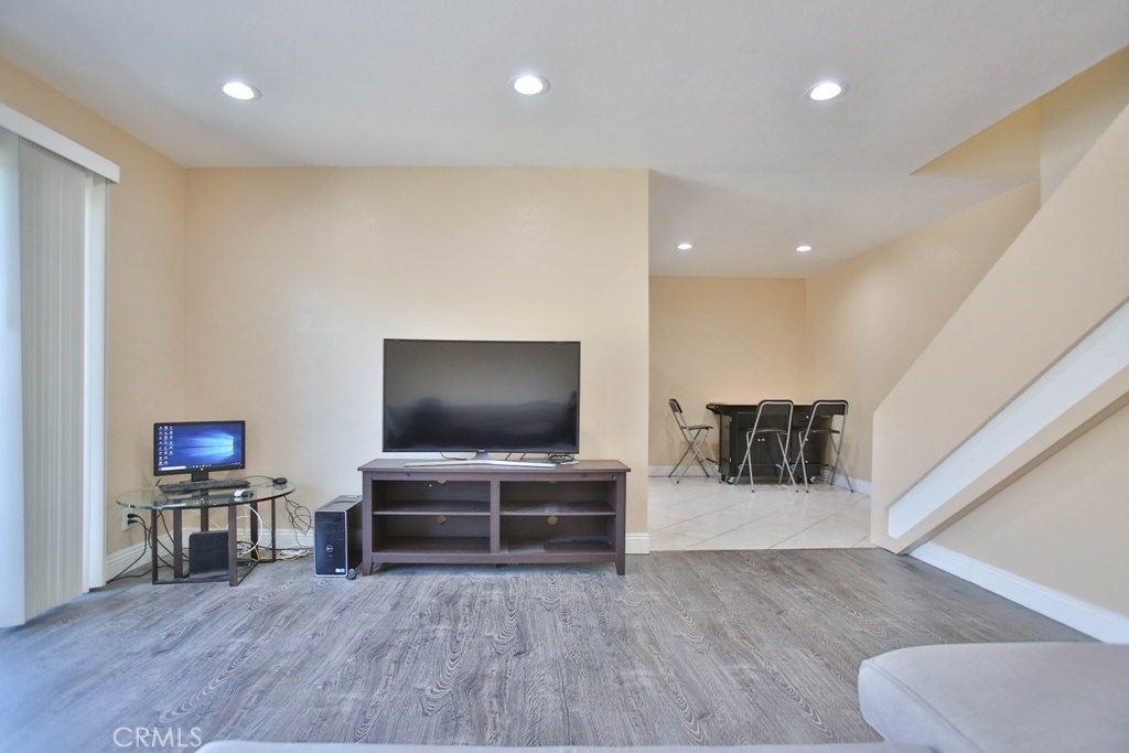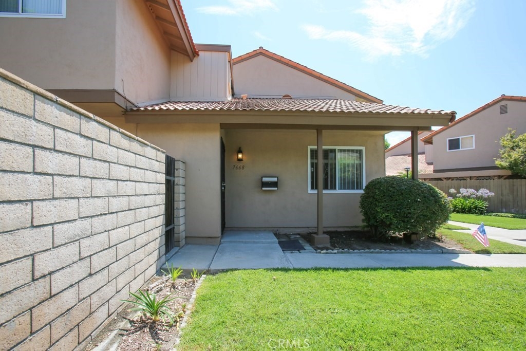 Two Story, nice floor plan and very spacious home is ready for new family. Family oriented and Pet friend complex with LOW HOA . End unit with direct car garage access, 4 bedrooms & 2 baths, over 1400 square feet of living area, and a master bedroom on main floor. New paint and new water resistant laminate wood floors. Recessed lighting thru out the entire home. New kitchen quartz countertop , new window blinds and new water heater. Cathedral ceiling in the master bedroom with mirrored closet doors. Association Includes pool and clubhouse along with large grass areas and playground for kids. . HUGE open patio which makes it great for BBQ and entertainment. Laundry is in the 2 car garage attached to the home. Very desirable area near schools, shopping, restaurants, all major freeways, Knott’s Berry Farm. A MUST SEE TO APPRECIATE!!