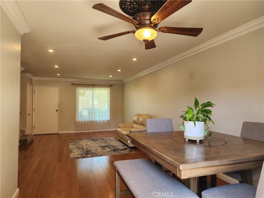 Welcome home!!! Rarely offered on the market, 3 bedrooms, 1.5 bathrooms, 2 car garage, Sunshine village Townhouse. This property has a real "pride of ownership" and has been remodeled & upgraded throughout. Inside, Featuring wood flooring in the downstairs living area. Central Air Conditioning & Heating, New Triple pane vinyl windows, Recessed lighting, Custom Kitchen cabinets with granite countertops, & stainless steel appliances. Downstairs 1/2 bath has been upgraded & remodeled. Upstairs Featuring 3 spacious bedrooms with plenty of closet space and ceiling fans in each and new carpet flooring. The full bathroom features a walk in shower and separate bath tub which has been upgraded & remodeled. There is direct access from home to upgraded quiet cozy patio area with covered area access to laundry room separate from 2 car garage. Sunshine village community features many amenities pool, clubhouse, basketball court, dog run, & water is included in H.O.A. Lastly, excellent schools Pacifica high school & Bell intermediate. Conveniently located near area restaurants, Shopping centers & Stanton Central Park. Don't miss out on this one!