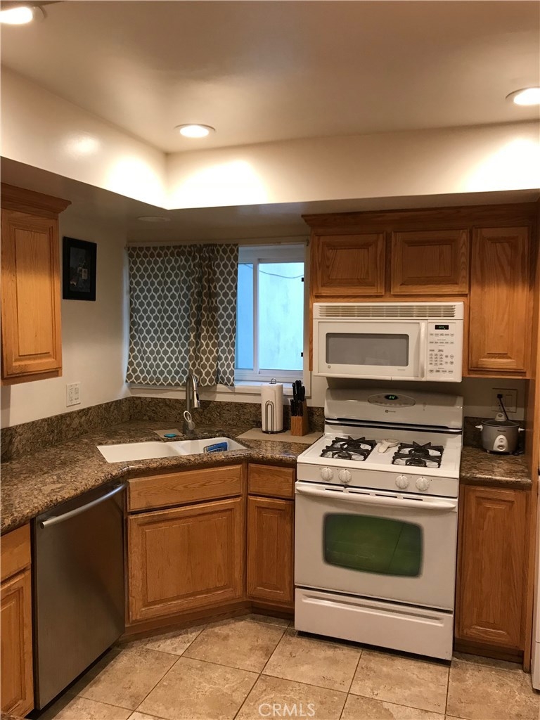 Well located within complex. Views of pool area and Clubhouse. Large patio separates unit from their 2 car garage (w/opener). All 3 bedrooms upstairs, each with recessed lighting and ceiling fans. Two have wall air conditioners. Kitchen flooring and counter tops have been upgraded. Super home for a new family.