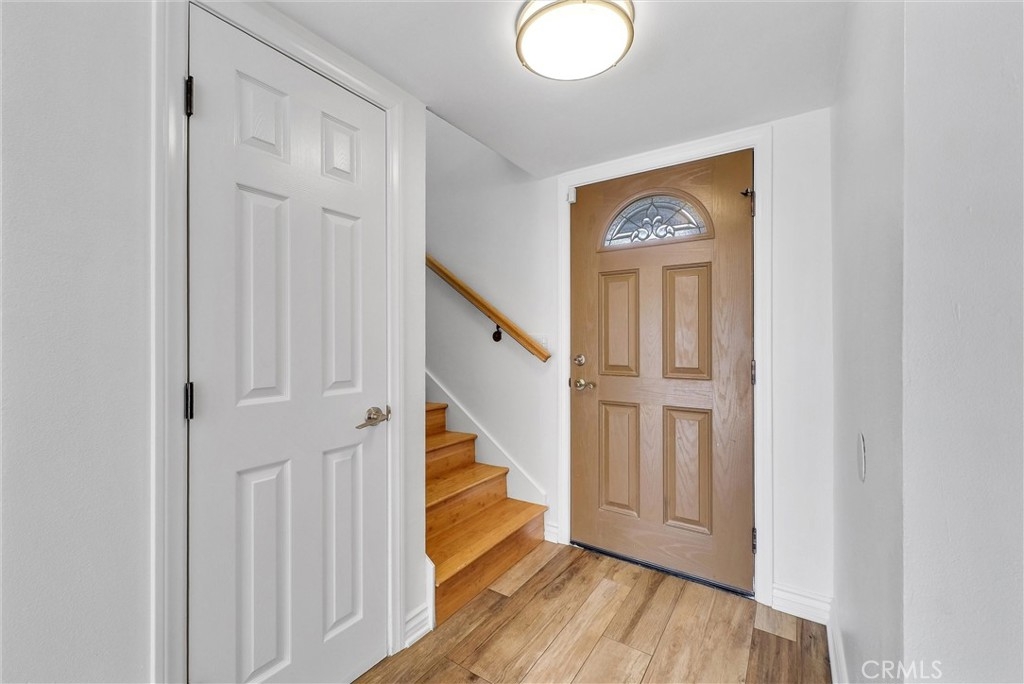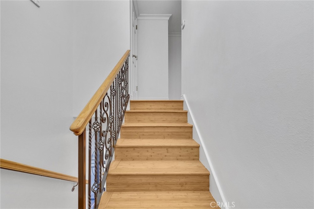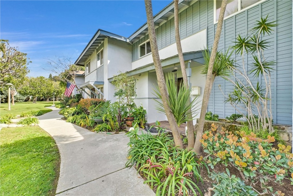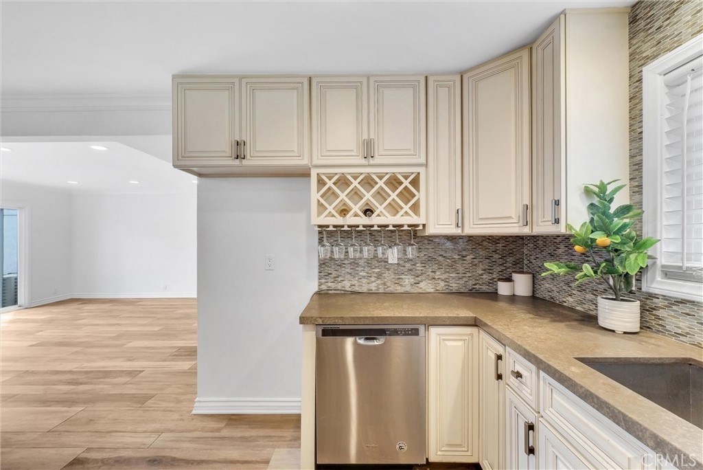This 2-story, 4 bedroom/2 bath townhome is Move-In ready and offers the perfect balance of comfort, style, and convenience for you and your family to enjoy. This home is located in the Sunshine Village community and is in a great location facing a large greenbelt. Upon entering, the home, you are greeted by a warm and inviting atmosphere with wood-like porcelain flooring and recessed lighting that flows seamlessly throughout the first floor. The updated eat-in kitchen is a chef's dream, boasting distressed-style cabinets for a touch of rustic elegance along with a tiled backsplash, stainless steel appliances, and high-quality quartz countertops with a built-in wine rack. The spacious living room opens to a private patio yard, creating an ideal indoor-outdoor living space. The adjacent Primary Bedroom features a walk-in closet, ceiling fan, and luxurious wood-like porcelain flooring, with a spa-like ensuite bathroom that includes heated flooring, a walk-in shower with dual shower heads, including a ceiling-mounted rain shower head and exquisite Peruvian Travertine-covered walls. There is also a glass slider which brings in natural light and allows direct access to the patio yard. As you walk upstairs on the wooden staircase you’ll notice the decorative wrought iron railings. There are 3 additional bedrooms with ceiling fans, wood flooring and closets with built in shelves. The upstairs bathroom has a double sink vanity with plenty of storage and a large tub/shower combo with glass sliding doors and porcelain flooring. Outside, the private patio yard is perfect for entertaining, featuring slate flooring and plenty of room to relax and unwind. Convenient access to the private laundry room from the patio yard makes chores a breeze, with additional perks including washer/dryer hookups, a tankless water heater, and a water softening system. The patio yard also provides direct access to the private 2-car garage. This home is equipped with central air conditioning and heating for year-round comfort. The Sunshine Village community amenities include a clubhouse, swimming pool, tennis courts, basketball courts, and lush greenbelts throughout. Home is centrally located near shopping, dining, schools, parks, public transportation, and freeways. Don't miss your chance to make this home your own!