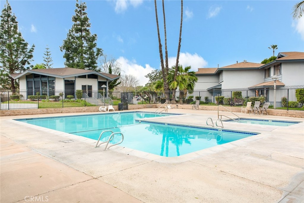 This charming single-story townhome located in the highly desirable Sunshine Village Community awaits you. This cozy home features 2 spacious bedrooms, 1 bathroom, laminate wood flooring, new interior paint, custom wood paneled wall, upgraded bright kitchen with white shaker-style cabinets, quartz counter tops, and stainless steel appliances. More features of this home include 2 large patios, 2 car garage, washer and dryer hook-ups, and a community clubhouse and pool perfect for entertaining.