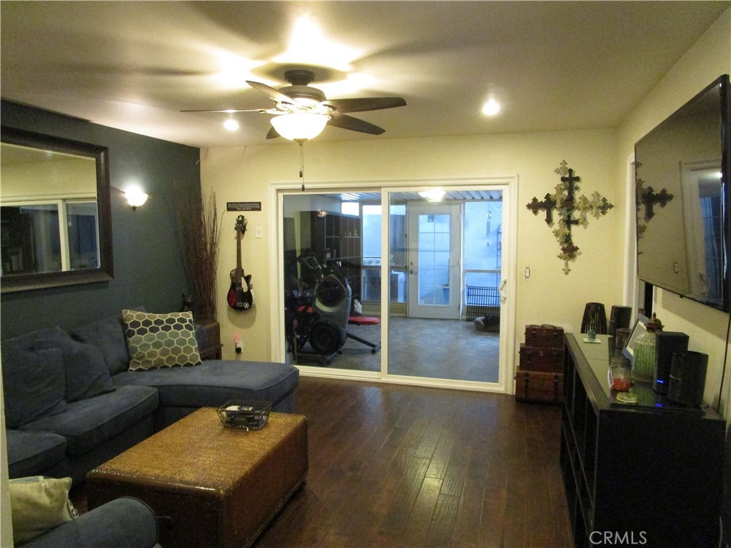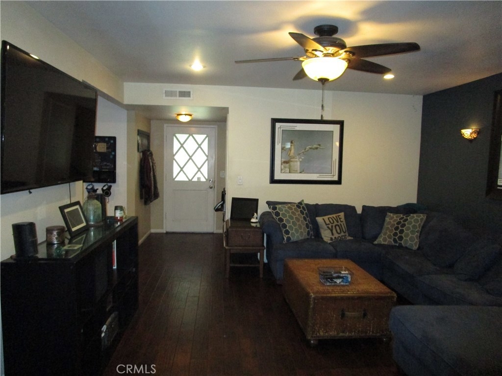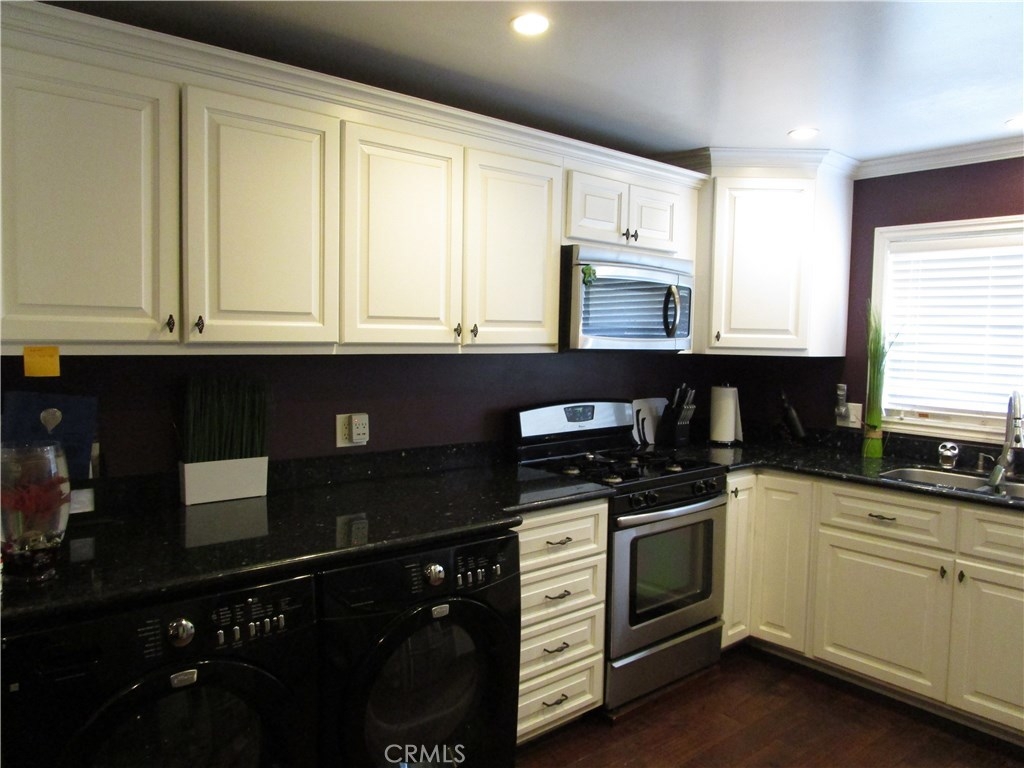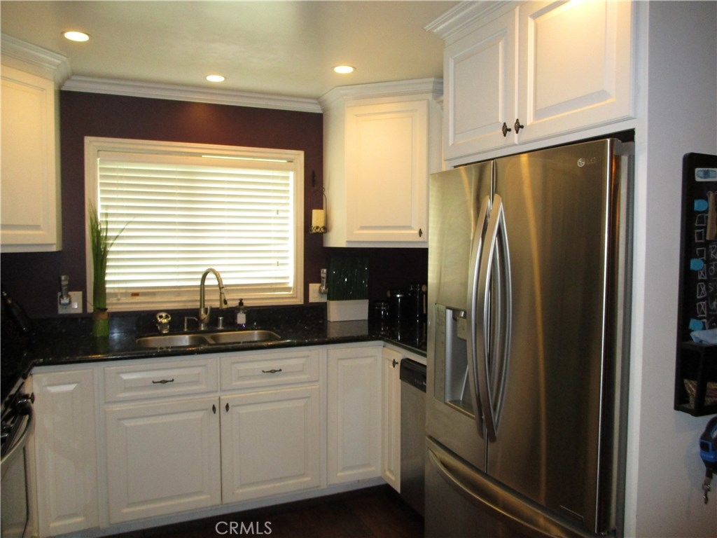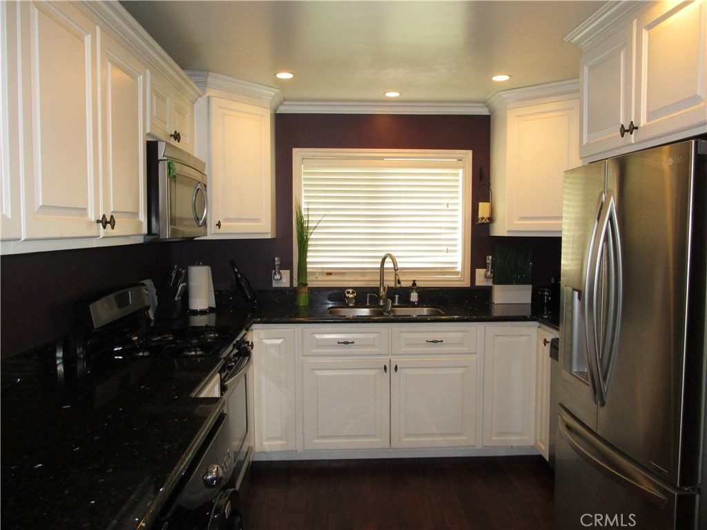 Welcome home!!! Rarely on the market corner end unit! 3 bedrooms, 2 bathrooms, 2 car garage Sunshine village community townhouse. This Property features a Downstairs master suite bedroom with walk in closet. New Central air conditioning and heating unit. Wood flooring, upgraded remodeled bathrooms with new flooring, custom granite counter tops, recessed lighting in living area's and kitchen. Additionally featuring remodeled upgraded kitchen with custom cabinets, Stainless steel appliances, granite counter tops. Best of all Bonus enclosed patio room for added living space. Great for entertaining. Sunshine village community features lots of amenities. Pool, Clubhouse, gated dog run, basketball court, tennis court, trash and water included, and beautifully landscaped greenbelts for a park like setting. Best of all Award winning Garden Grove unified school district. Pacifica high school, Bell intermediate. Conveniently located near Shopping center's, restaurants and Stanton Central Park.
