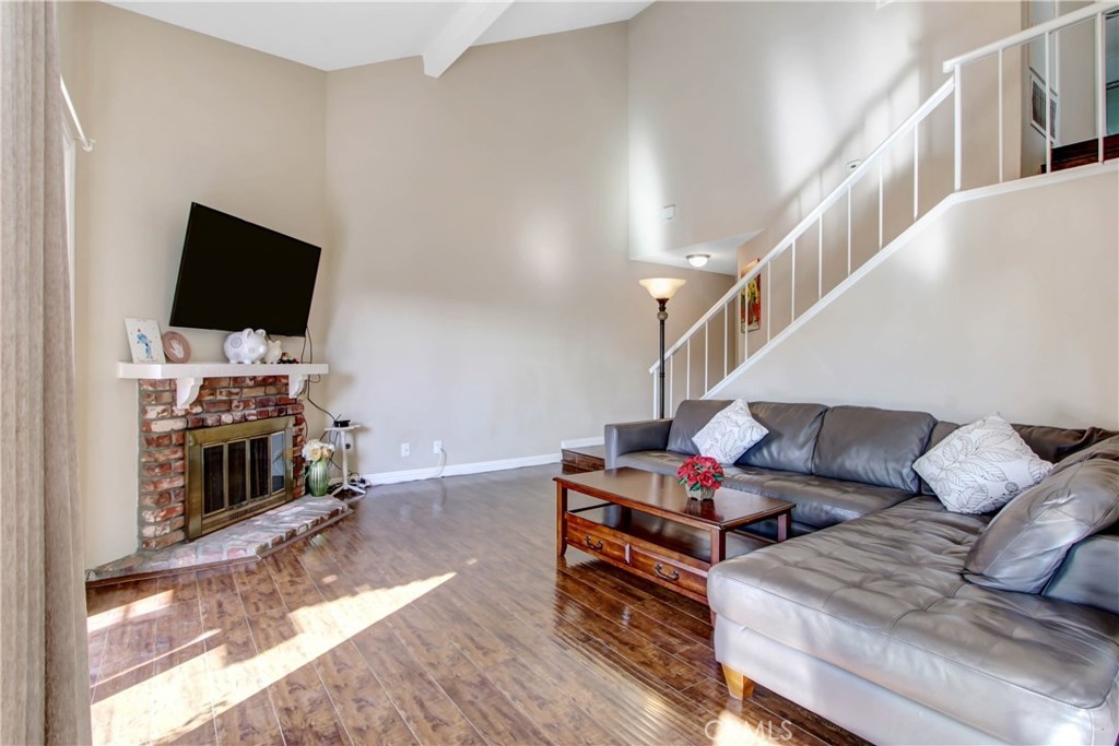 Beautiful 2-story townhouse located in desirable Western Meadows Community, in City of Stanton border Cypress! Vaulted ceiling, open floor plan, bright and airy; High ceiling & brick fireplace in living room; nicely upgrade kitchen with Quartz counter top & white cabinets, stainless steel appliances, breakfast bar brings more functionality and modern touch; Pergo & Tile flooring thru-out the unit; 2-car attached garage with direct access; Cozy backyard for all your outdoor entertainment; Well maintained complex with pool, spa & guest parking. Centrally located, walking distance to park and public transportation; minutes away to all shopping and surrounding cities... Great for first time home buyer or investor. BEST VALUE IN TOWN!!!