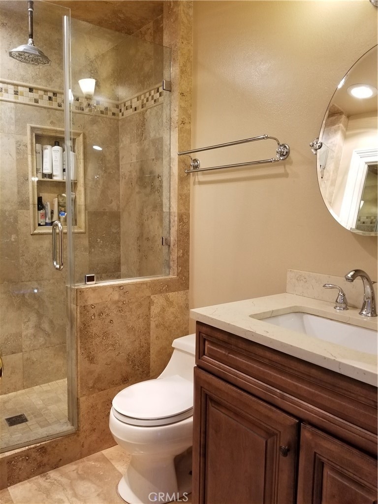 Beautiful Home Sweet Home Private Unit In Stanton City, Offers Two Story 3 Bedrooms, 1 1/2 Bathrooms, 1,124 Living SQFT, Attached 2 Car Garage With Direct Access, Parking Space, and Private Patio With Fruit Trees. Upgraded Kitchen and New Appliances, New Main Bathroom, Freshly Painted, Crown Moldings in Kitchen, New Double Pane Windows, New Cabinets, and New Floors. Inside Laundry Room. Private end unit offer lots 2,254 SQFT which larger compare to other unit in the complex. The home located in a good community with amenities of resident club house, swimming pool, spa, and events hall. Walking distance from shopping center, restaurants, schools, cypress college, and freeways. Must see inside.