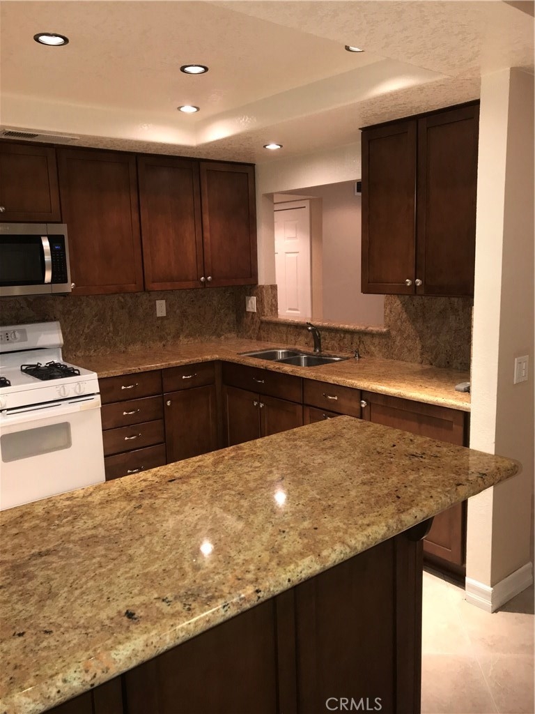 Welcome to the gated community of Briar Oaks. Rarely on the market a downstairs 3 bedroom, 2 bathroom unit with attached direct access garage. Step into the open concept floor plan and appreciate the beautiful updates this unit has to offer throughout. The master bedroom has a large closet with closet organization system, built-in window seat, en-suite bathroom with a dual sink vanity, and jacuzzi tub. Across the hall are two additional bedrooms with ample closet space. Just off the kitchen which features granite kitchen countertops ample storage and lovely cabinetry is a separate dining space. Some additional features include central heating and air, ceiling fans and alarm system. The community features a pool, spa and guest parking.