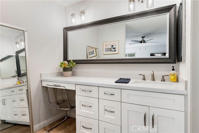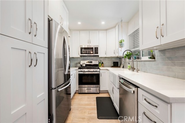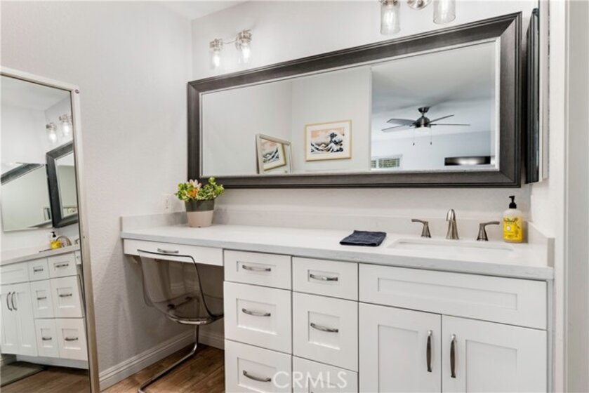 Beautifully completely updated corner-unit condo ideally located , tucked away at the back of a quiet, well-maintained community, this home offers exceptional privacy. The property has been completely remodeled, featuring new dual-pane windows, two modern bathrooms, a new kitchen with contemporary finishes, and stylish laminate flooring throughout. As a desirable corner unit, the home is filled with abundant natural light from extra windows. Enjoy outdoor living on your private balcony. Additional highlights include central air conditioning, a laundry closet on the patio, and a one-car garage. Low HOA dues are $369 per month and include access to a community pool and spa. Don’t miss the opportunity to own a light-filled, move-in-ready home in one of North Orange County’s most convenient locations, with access to shopping, dining, and major freeways. It's centrally located between the 91 and 22 freeways and is just minutes from the 605. The property comes with total two(2) parkings; one assigned and 1 garage. Professional pictures coming soon!