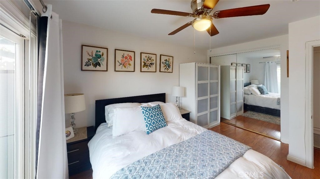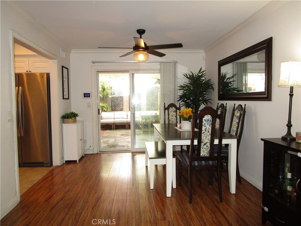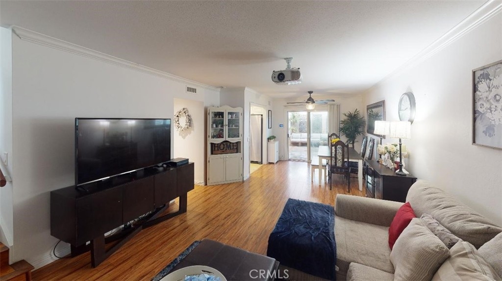 Welcome Home!!! Rarely offered on the market!! Corner End Unit! Featuring 3 bedrooms 1.5 bathrooms "Pride of Ownership" Townhome. This lovely home is completely remodeled and upgraded Throughout. Featuring a spacious Kitchen with custom cabinets and granite counter tops. New hardwood flooring throughout, Canned lighting throughout home, beautifully remodeled bathrooms, upgraded dual pane vinyl windows, Culligan water softner filtration, and a private quiet cozy patio area, and a 2 car garage. This property also features upstairs patio from 2 bedrooms. Only home in sunshine village with this additional upstairs patio! Sunshine village features a community pool & club house, basketball court, tennis court, dog park area, H.o.a. covers water and trash bill. Conveniently located near shopping center's, restaraunts, and Stanton Central Park. Don't miss this one!