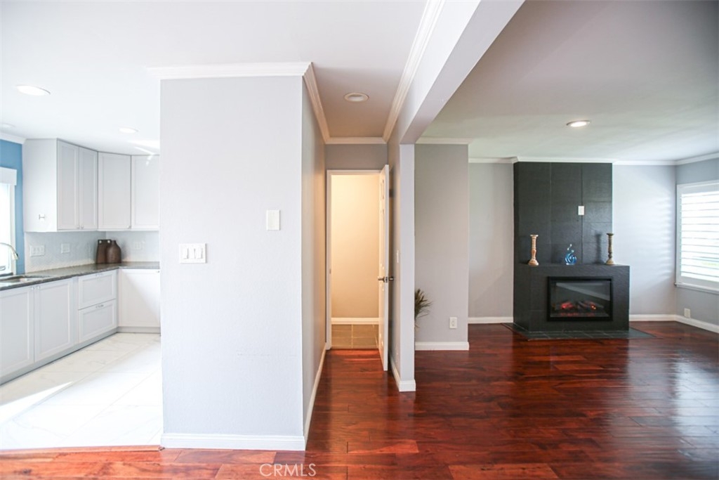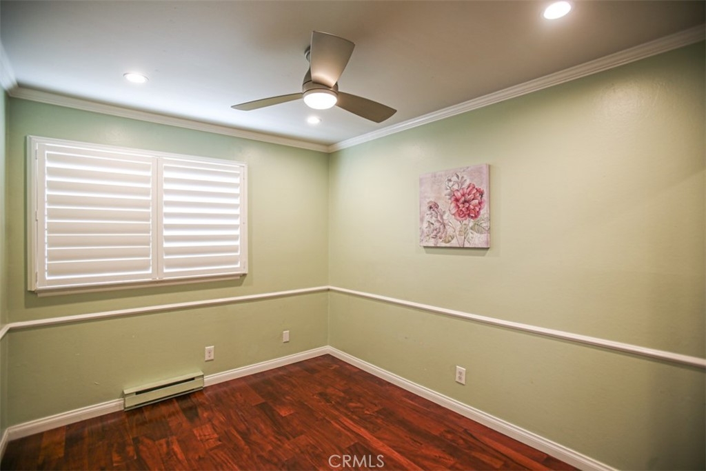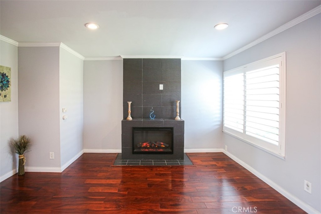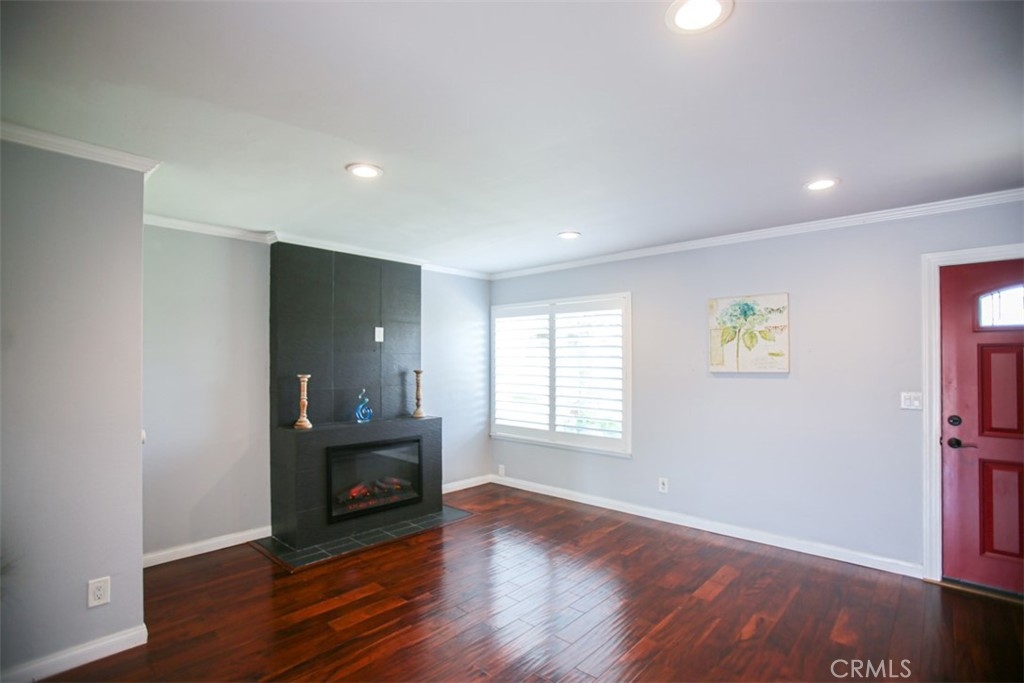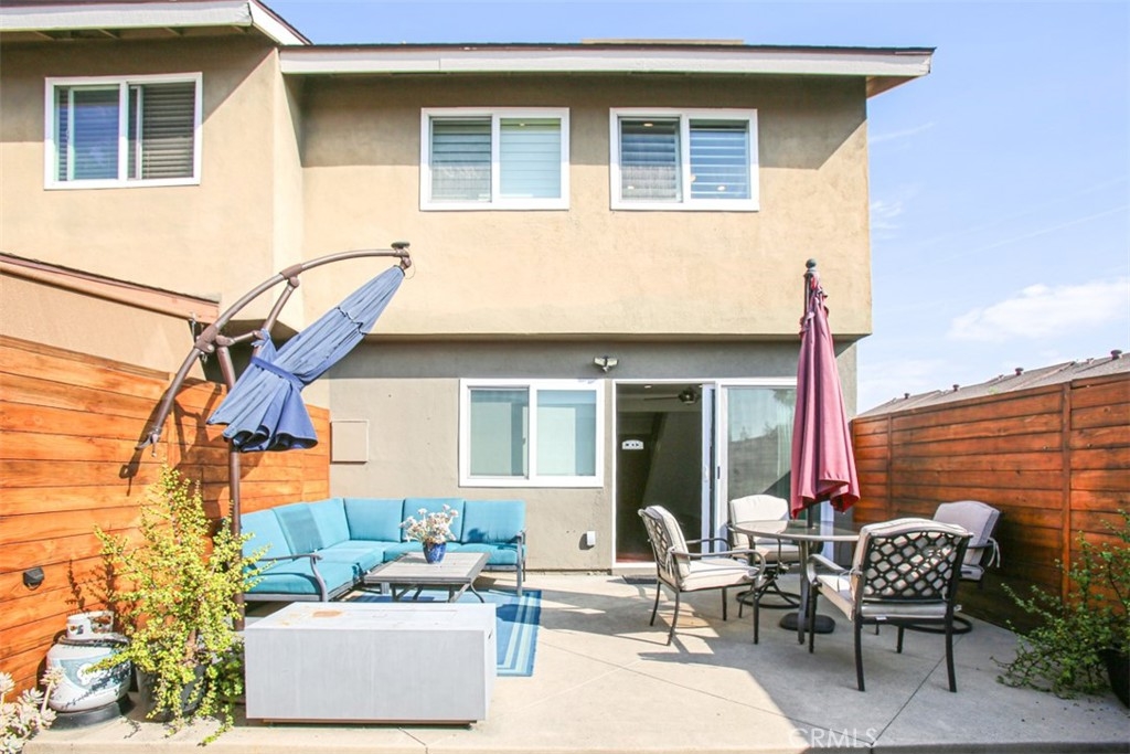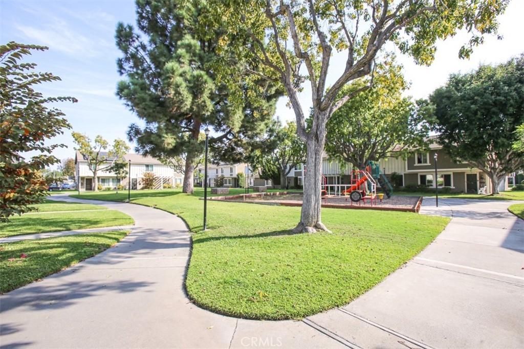 Turnkey Corner unit! Bradford place community Townhome, 3 bedrooms, 1.5 bathrooms, detached 2 car garage. Inside featuring laminate wood floors, plantation shutters, recessed lighting, built in electric fireplace, upgraded dual pane windows. First floor features a half bath, dining area, and remodeled kitchen. Sliding door access to spacious back patio area. All 3 bedrooms upstairs, remodeled bathroom, laminated wood floors. The Bradford Place community offers resort-style amenities, including a sparkling association pool, inviting clubhouse, and a fun-filled kids' playground. Best of all, enjoy the peace of mind and educational excellence of the award-winning Garden Grove Unified School District.
