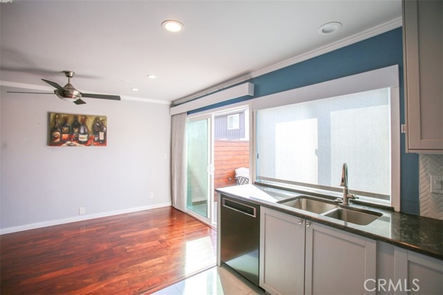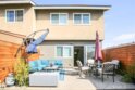 Corner end unit! Bradford place community Townhome, turnkey and move in ready. 3 bedrooms, 1.5 bathrooms, 2 car garage. Inside featuring laminate wood floors, plantation shutters, recessed lighting, built in electric fireplace, upgraded dual pane windows. First floor features half bath, dining area, and remodeled kitchen. Sliding door access to spacious back patio area and detached tow car garage. All 3 bedrooms upstairs, remodeled bathroom, laminated wood floors. Bradford place community features many amenities, kid playground, association pool and clubhouse. Best of all award winning Garden Grove unified School district.