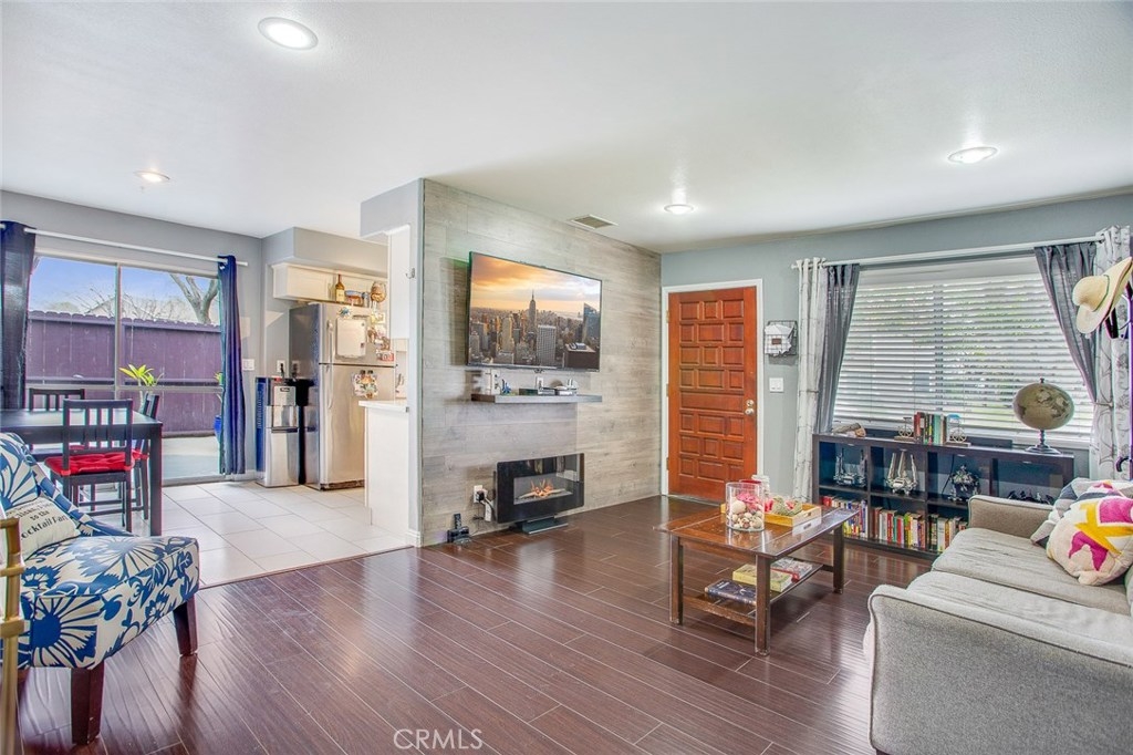 This charming single-story townhome located in the highly desirable Sunshine Village Community awaits you. This cozy home features 2 spacious bedrooms, 1 bathroom, laminate wood flooring, new interior paint, custom wood paneled wall, upgraded bright kitchen with white shaker-style cabinets, quartz counter tops, and stainless steel appliances. More features of this home include 2 large patios, 2 car garage, washer and dryer hook-ups, and a community clubhouse and pool perfect for entertaining.