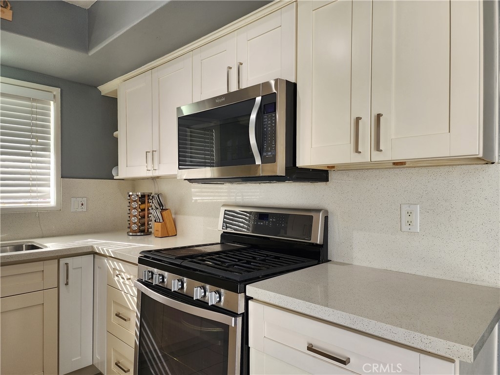Welcome home!! Rarely offered on the market! Single-story townhome located in the highly desirable Sunshine Village Community awaits you. This cozy home features 2 spacious bedrooms, 1 bathroom, & 2 car garage. As you enter you will find it featuring. Central Air conditioning & heating, laminate wood flooring, recessed lighting throughout, new interior paint, custom wood paneled wall, upgraded light & bright kitchen with white shaker-style cabinets, quartz counter tops, and stainless steel appliances. Lastly this home boasts 2 large spacious patios 1 one in the rear and 1 on the side, & Washer - dryer hook-ups. Sunshine village community features many amenities. Water included, Pool, Club house, Dog run, Basketball court and beautifully landscaped greenbelts for a park like setting. Don't miss out on this one!