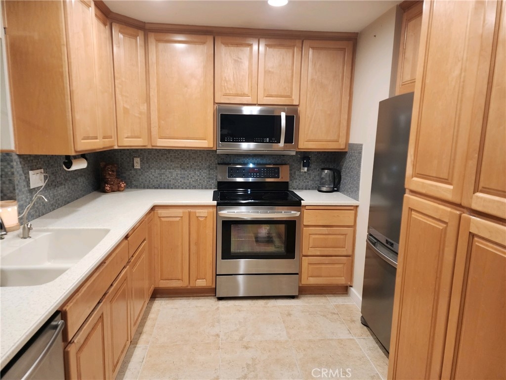 A beautiful “Bradford Place” Townhome is waiting for its new family to call it home. If it wasn’t for a relocation, sellers would call their home perfection. This unit within the “Bradford Place” rarely comes on the market. Within Award Winning Garden Grove School District, this “Rare” unit with a “Grand-fathered” enclosed patio adds a permitted Bonus room to the 1121 sq ft of living area. Great to use as a Sun Rm, Office or Den. Home features an updated custom designed kitchen with beautiful & well maintained “real” Maple cabinets, Corian counter tops, tiled back splash, 24x24 travertine style tile flooring, complete with all Stainless Steel Appliances to stay & for new owners to enjoy. Home, is zoned Single Family Residence & is VA Approved w/ VA Friendly sellers. Design of the home, allows access through detached 2 Car Garage, onto patio area between garage & townhouse. Or a short stroll through the serene greenbelt gardens to the front door. Either greets you to the first level, boasting an open area, beautifully updated w/ newly installed Ann Arbor Oak Laminate flooring in living rm; remodeled half bath w/ modern finishes, updated kitchen and enclosed patio. Upper level, you’ll find the full bathroom remodeled w/ modern finishes & all 3 spacious bedrooms. A “Turn Key” home within a HOA Community w/ low HOA Fees yet provides plenty of amenities such as, extremely well maintained grounds of greenbelts, picnic areas, recreation room, pool & spa. Home is about 8 townhouses walk to the pool & spa area. Sellers were about complete with making home outfitted with “Smart” amenities such as smart outlets, thermostat for Central Air & Heat & Ring alarm & camera system. Little is left for new owner to complete & customize. Sellers’ love their “Whole House” water filtration, water softener & reverse osmosis filtration system & are leaving entire system for new owners to further enjoy. Washer & dryer in garage will stay as well. “Location” is a vital word in real estate & Bradford Place is only minutes from Cypress Plaza Shopping Center, restaurants, 2 miles to the Joint Forces Military Training Base, 2 miles to Costco & 3 miles to Knotts Berry Farm. Within the Award Winning School District of Garden Grove, address belongs to Bryant Elementary, Bell Intermediate & Pacifica High School. Perfection with the fact, it feels a like a Single Family home & most affordable within “High” school ratings of Orange County. A must see & an obvious opportunity not to pass up.
