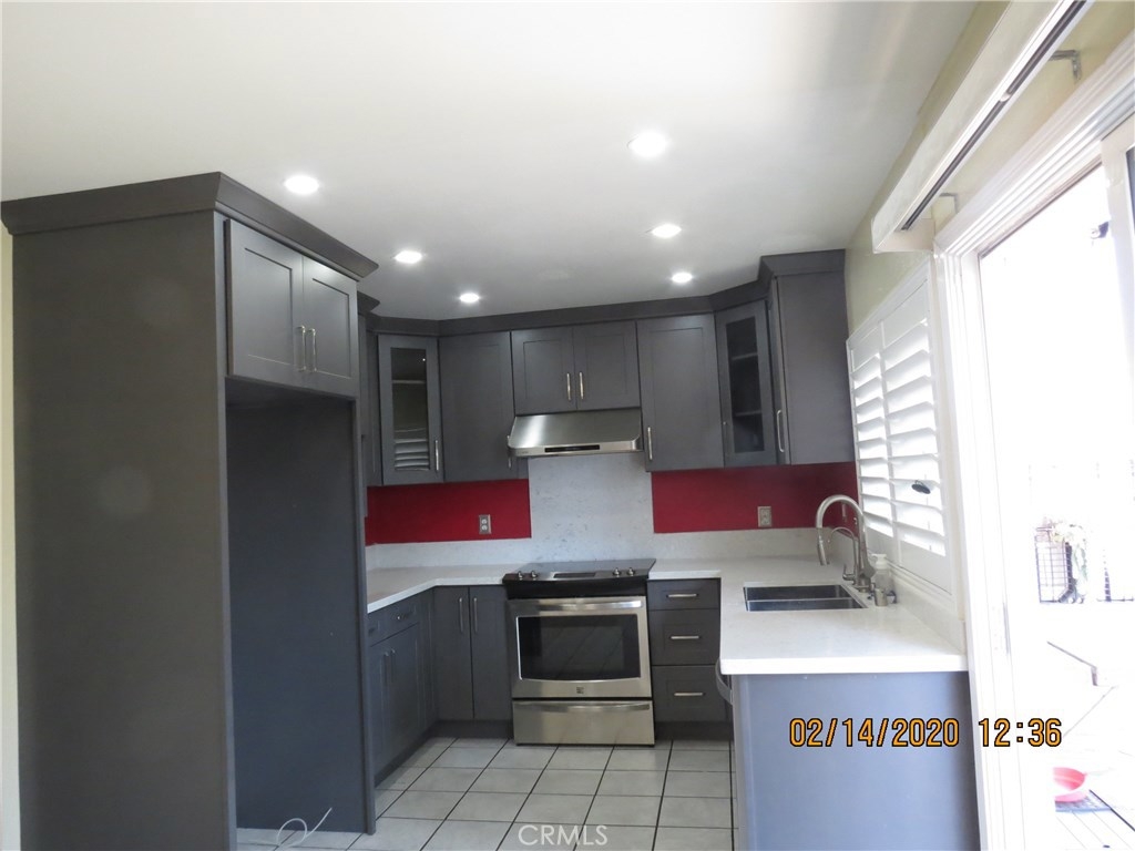 Back on the market. Beautiful End Unit townhouse in good community. The front door is double door entry (hard to find one like this). This townhouse is in good condition with recessed lighting in living room. The kitchen was remodeled about only 6 months, very bright and nice with quality kitchen cabinets, quartz counter top, and stainless steel electric range with glass top, beautiful and high quality range hood, newer and stainless steel dishwasher. Big court yard between detached 2 car garage and the main house. Dual pane windows with plantation shutters. There are 3 portable ACs, and washer and dryer will stay. The unit is located near HOA park, parking lot and playground. Border with Cypress city, close to shopping centers and famous restaurants. This is very good deal, expect to be Sold very fast. Hurry or you will miss this opportunity.