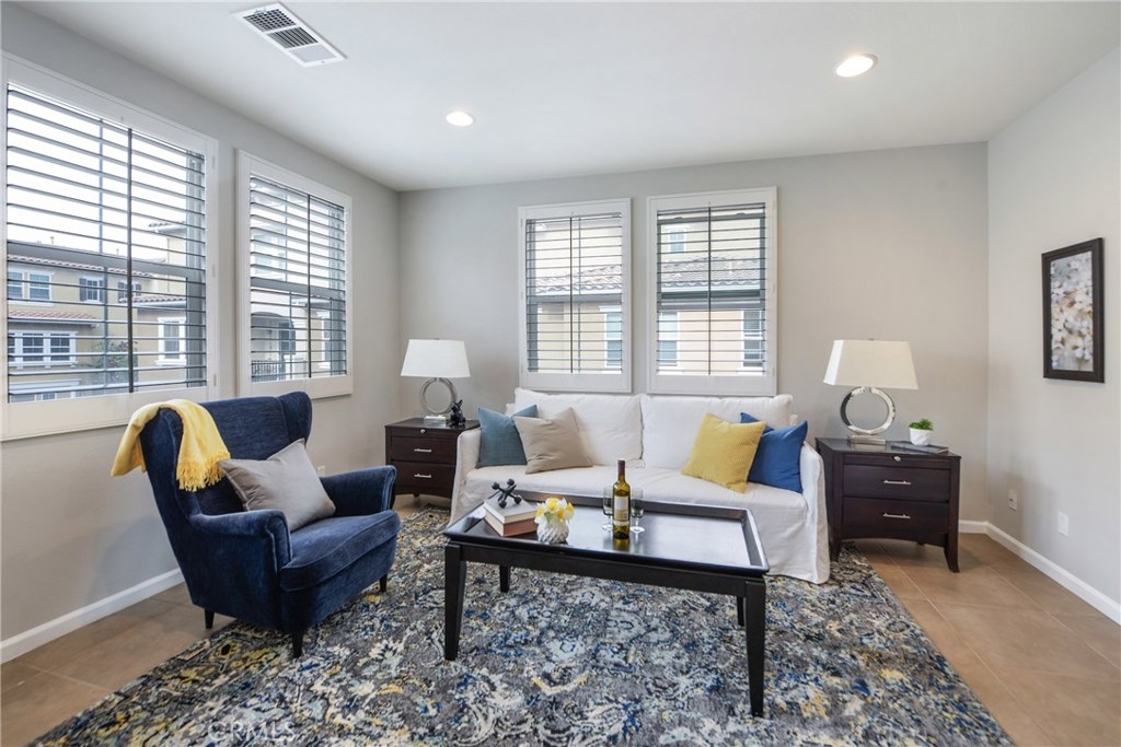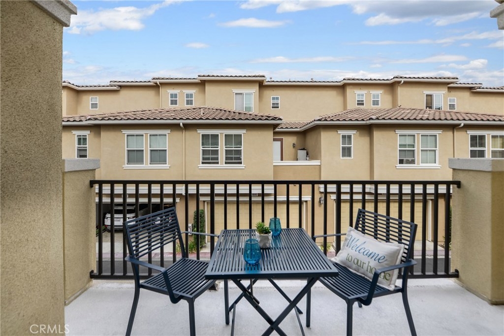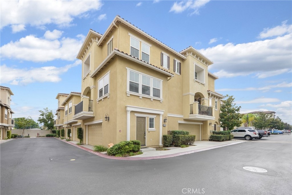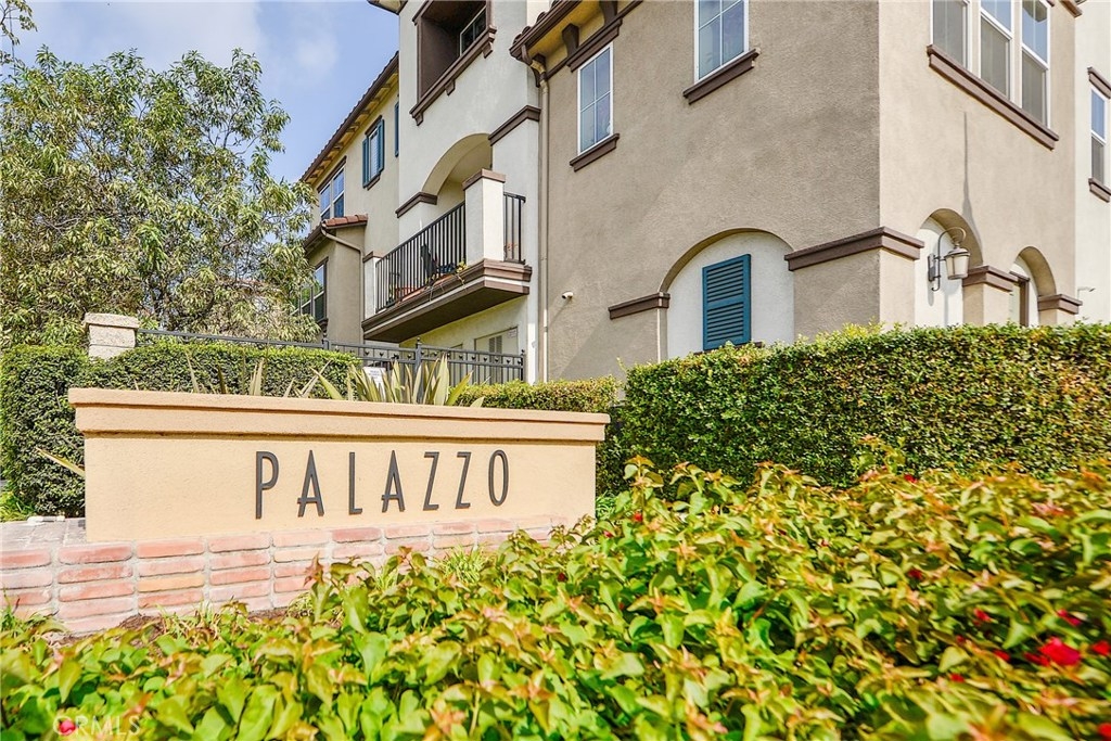 An absolute must see, this beautifully upgraded end unit in the highly desirable Palazzo Community. Built in 2007, the 1,389 square-foot home offers two bedrooms; 2.5 bathrooms; and a master bedroom with an ensuite bathroom. You will fall in love with the open concept living with high ceilings opening up the living room and dining room with the warm fireplace as a perfect focal point. The beautiful kitchen showcases upgraded white cabinets, stone counter tops, stainless steel appliances and sink with plenty of storage. The private balcony is perfect for relaxing, dining and entertaining. Other amenities include a newly painted interior, recessed lighting, plantation shutters, tile flooring and wood flooring, making this lovely home ready for your personal decorating touch. There is an inside laundry area which accommodates full washer and dryer on the main level. The two car attached garage has direct access to the downstairs entry. The Palazzo Community features well maintained grounds with an impressive pool area featuring: large pool, spa and an outdoor living space with fireplace, bar-b-ques and plenty of tables for outdoor dining. A must see.