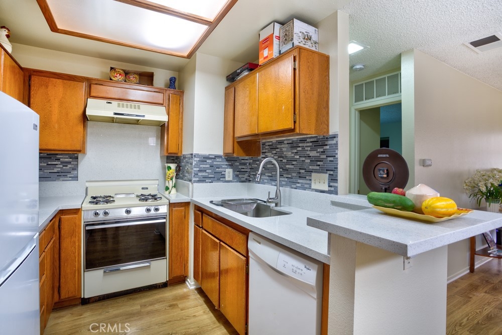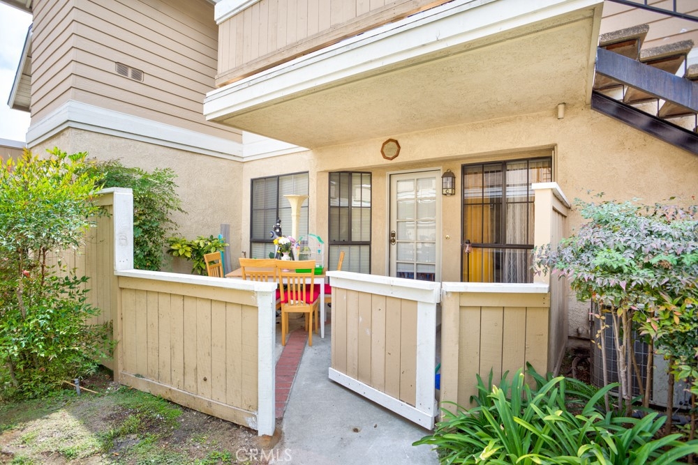 BUY THIS HOME AND TRADE! You may get $75,000 down pay assistance. Beautiful Orange County condo tucked in a safe and quiet gated community with 24 hour security guard. The home has new countertops, new flooring, and fresh paint. Floor to ceiling windows at the entryway lends plenty of natural light that compliments the brand new wood flooring throughout the kitchen and living room. The bedroom boasts new carpet, dual closets, and a full bathroom with a soaking tub and extra cabinet storage. Additional features include extra cabinets throughout, washer/dryer, a private front courtyard, large private patio, and a parking carport with a storage locker. The well maintained community features 3 pools - with one heated all year round and 3 hot tubs, all surrounded by lush landscape. Just a short walk away from many markets, restaurants, and retail stores. Easy access to the Garden Grove Freeway and Beach Blvd. All information deemed reliable but not guaranteed.