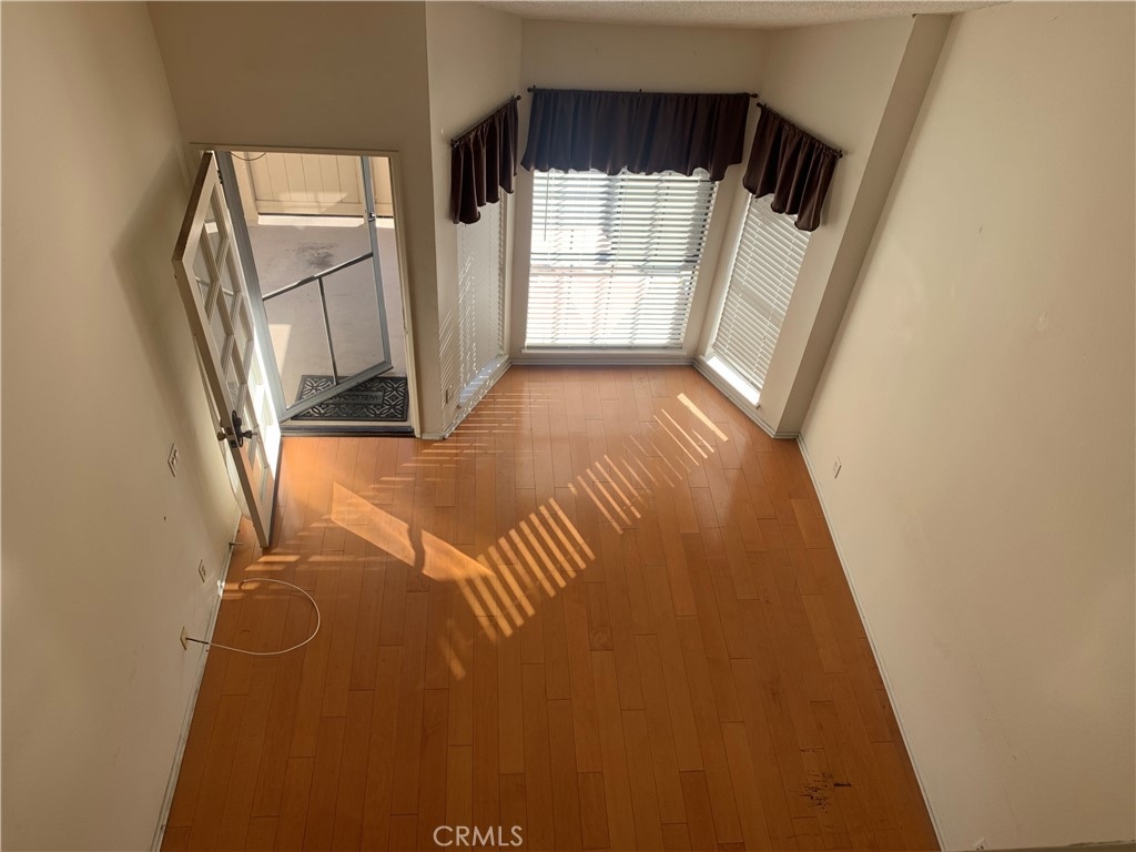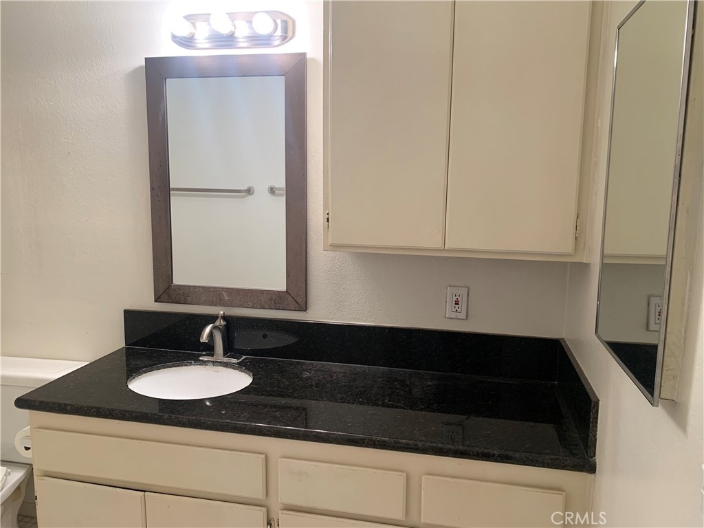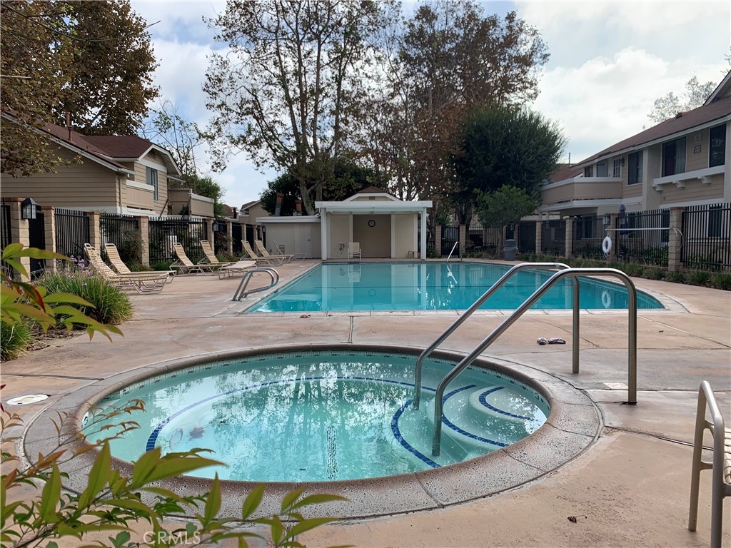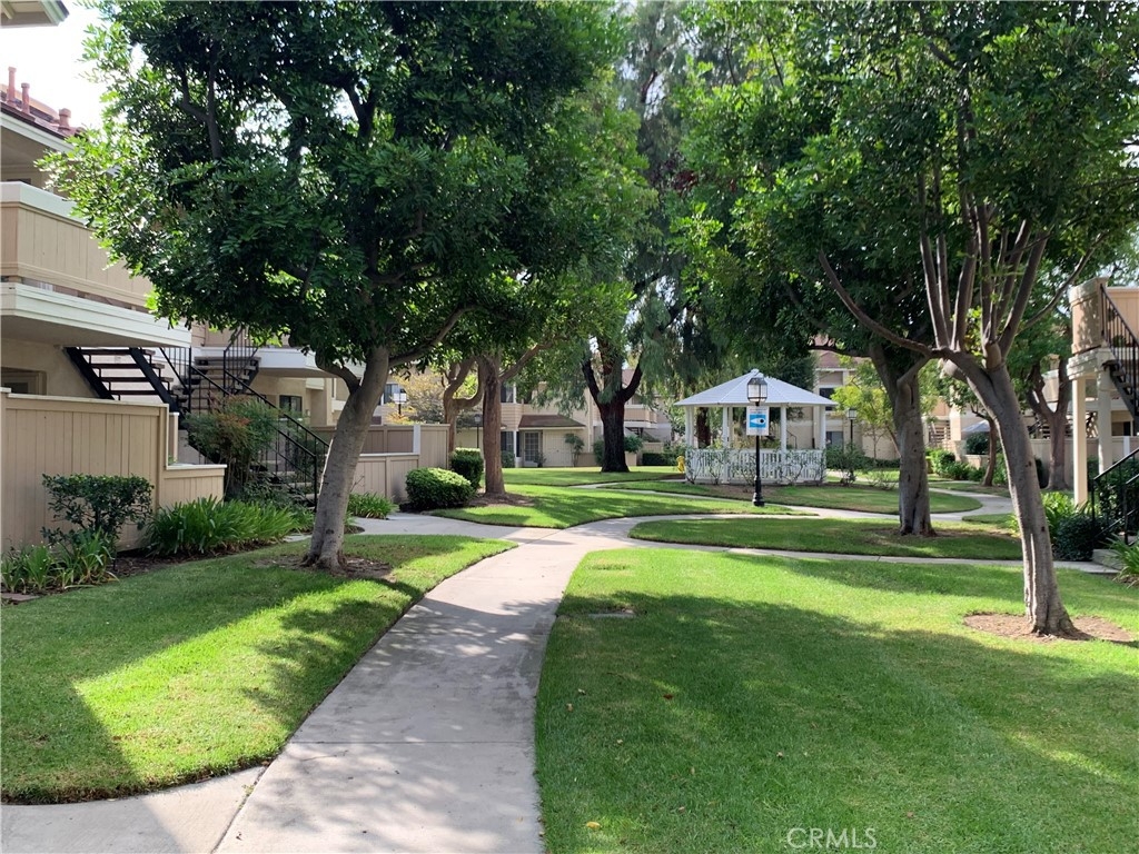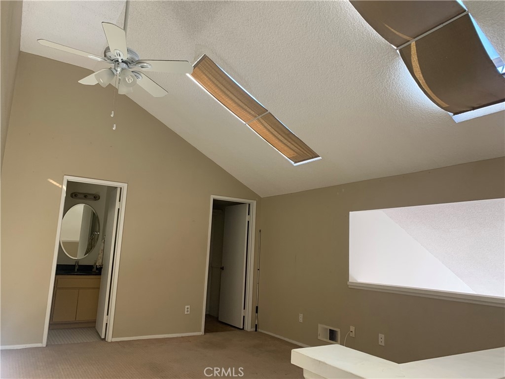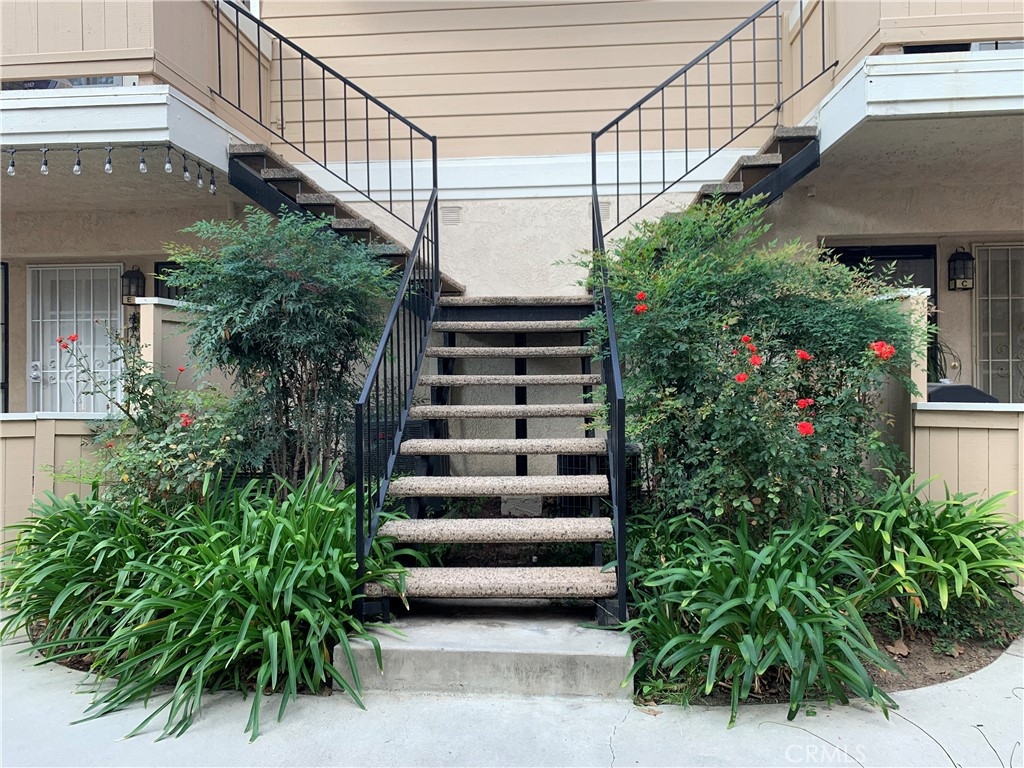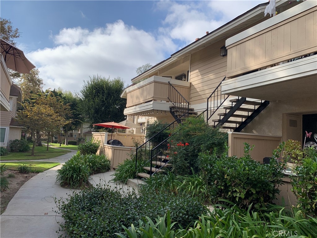 This spacious upper unit two bedroom condominium has a delightful balcony that over looks the green belt. In a perfect location, it is far enough from the pool to give you privacy and peace but close enough to take a short walk and enjoy the sparkling pool and spa surrounded by lush landscaping. There is an assigned carport with storage cabinets for this unit and the community has a gated entry with a 24 hour attendant. The floor plan provides a kitchen opening onto the dining and living area with wall to wall windows towards the private balcony. The main level primary bedroom has two closets and a spacious full bath. The loft style second bedroom is on the upper level with its own walking closet and a private half bath. Both the main level living and the loft have vaulted ceilings and the loft's two skylights have been upgraded to open for even more fresh air. Easy FWY access and a short ride to amazing restaurants and shopping such as Rodeo 39 Public Market make this a prime location.