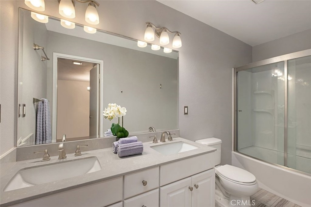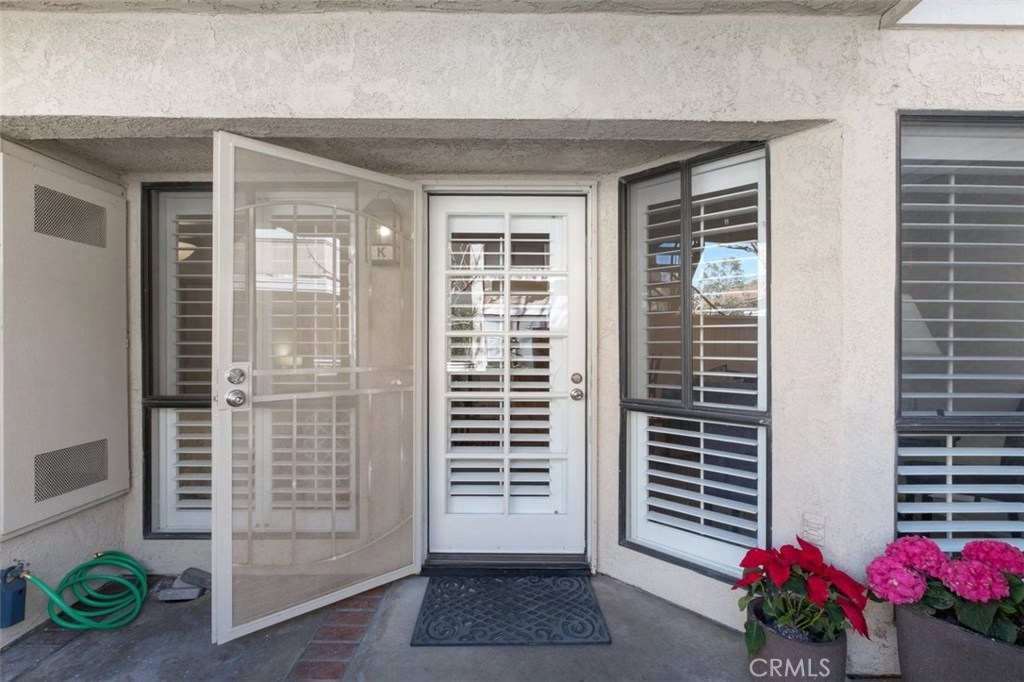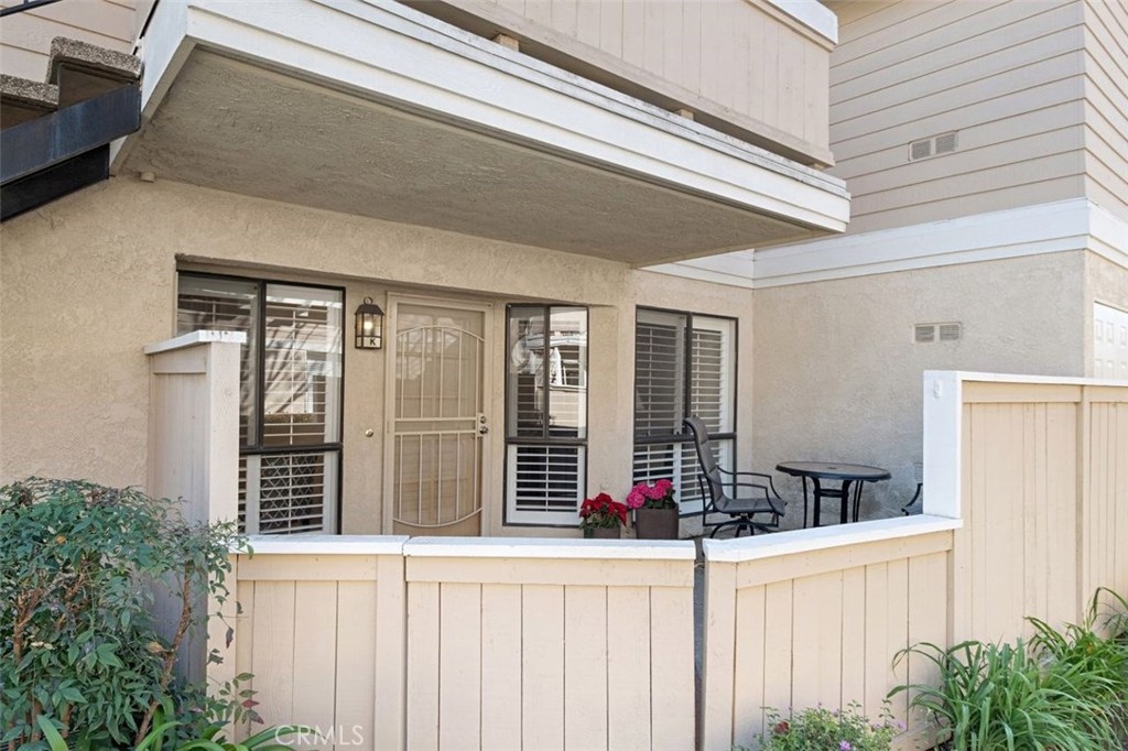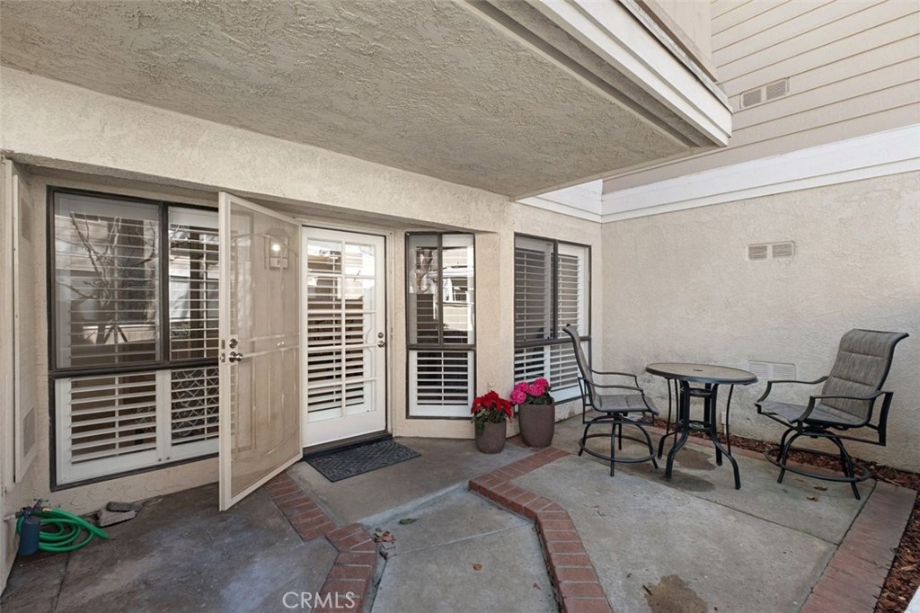 Wonderful opportunity to own this single story home in the popular Crosspointe Village Community. If you’re a first time buyer, someone looking to retire or an investor, look no further. This property is meant for you and offers many amenities. Starting with security and comfort, there is a 24 hour guarded gate leading into the community. You’ll instantly fall in love with the professionally landscaped grounds and walkways outlining the many greenbelts. With Summer around the corner, enjoy one of the three pools and spas. Your lower unit has a brick lined patio, perfect for you to relax and enjoy the view of the Greenbelt. Your new home welcomes you with a light and airy open floor plan with textured ceilings, shutters, bay window, wall to wall carpet in living, dining and bedrooms, A/C, and indoor laundry. Kitchen opens to dining and living rooms and includes tiled counters, breakfast bar, wood cabinets, dishwasher and pantry. The spacious bedroom has lots of light and two mirrored wardrobe closets. Bathroom was tastefully remodeled with a double vanity, toilet, shower, tiled flooring, towel racks, and a custom mirror. There is an assigned carport with storage. Crosspointe is a pet friendly community, close to fwy, and conveniently located across the street from the Village Center, presently in the renovation stage of a new construction introducing new eateries and other businesses.