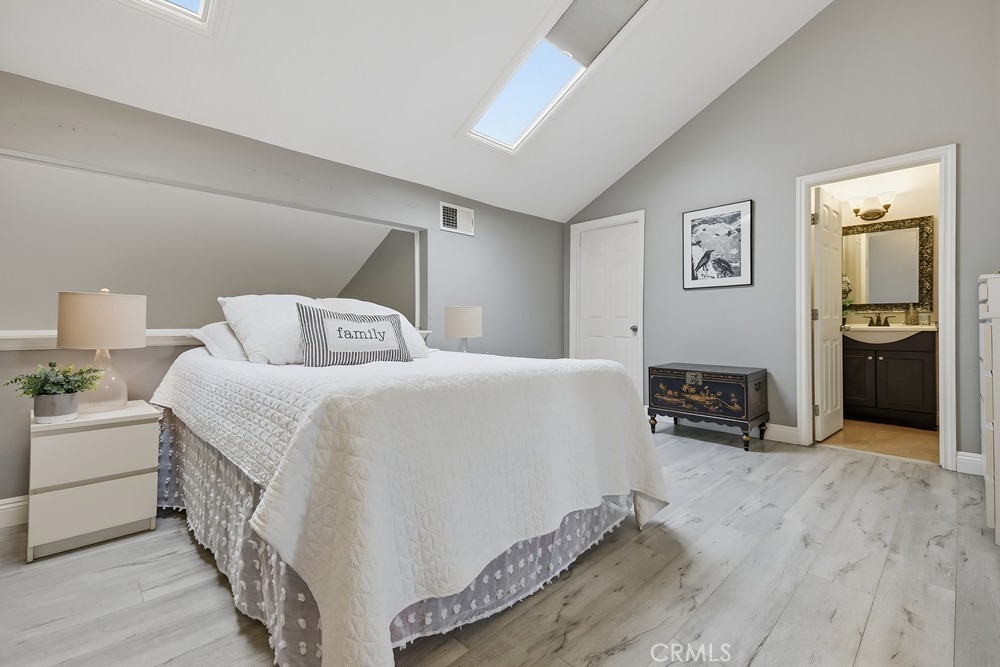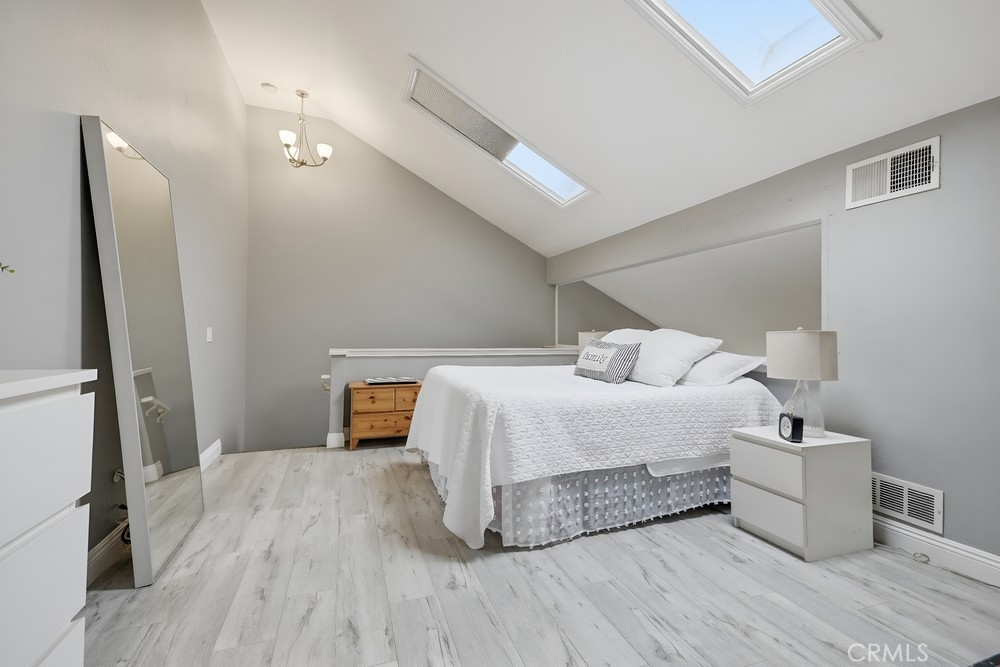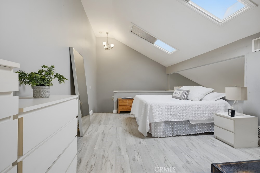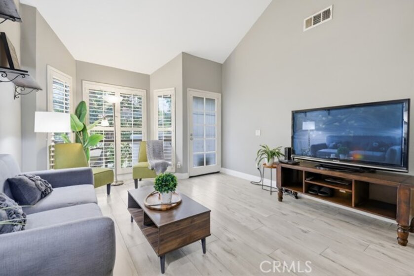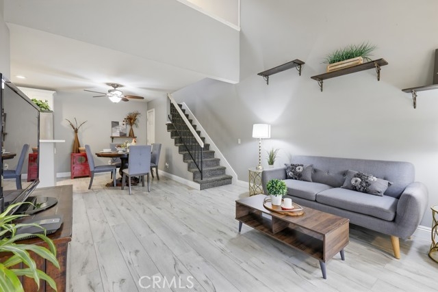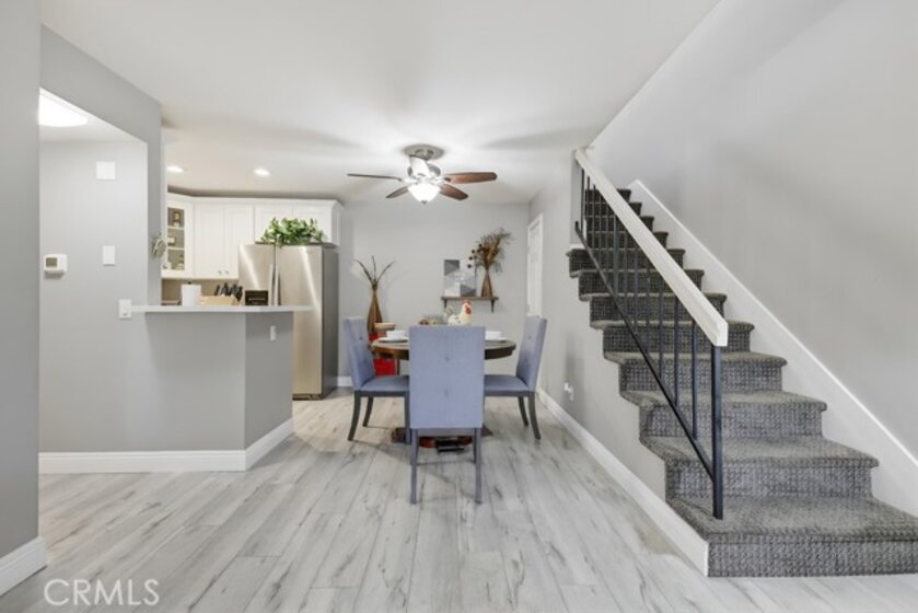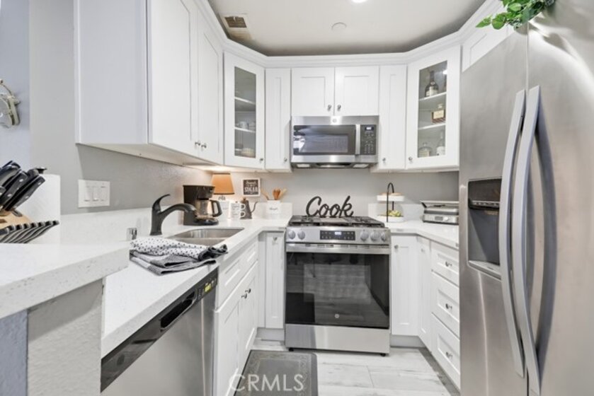 Welcome to the Community of Crosspointe Village. A charming mix of condos and Townhomes nestled in a guard-gated, well-maintained contemporary tract of homes. The units feature green belts with shaded Gazebo's for neighbors to gather and children and pets to enjoy. There are 2 pool areas in the community, as well as plenty of open parking for family and friends to visit. This unit has been remodeled in the last 3 months and now features on-trend vinyl flooring, new white kitchen cabinetry, white countertops, and stainless steel appliances. Bathrooms have upgraded features as well. Enter the top-level unit with a balcony to sit and enjoy the squirrels playing in the tree-tops or BBQ for friends. The light and open living room has a small bay window and is adjacent to the dining area off the kitchen. There is a primary bedroom downstairs and full bathroom. Upstairs is a large bedroom loft with a small walk-in closet and a half bath, and features 2 skylights. Forced Air Heating and Air Conditioning as well as high vaulted Ceilings, make the unit seem spacious. Convenient inside laundry with a stackable washer and dryer will remain with the unit. The unit comes with a designated covered parking spot and storage cabinet, and there is open parking for a second vehicle. The community is within walking distance to Rodeo 39 Public Market, full of eateries, music, and shopping.